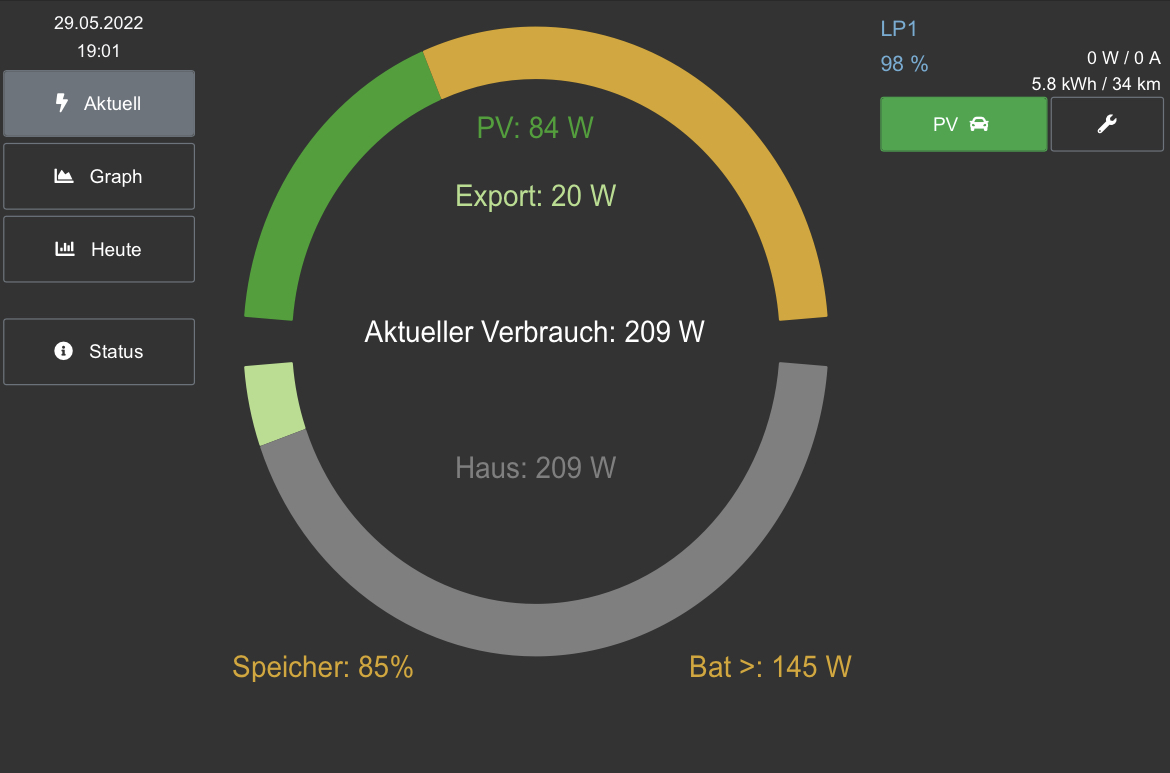 openWB-pro+, openWB-Buchse, E3/DC S10pro+19.5kWh, 30kWp Ost-Süd, Model 3 und Ion