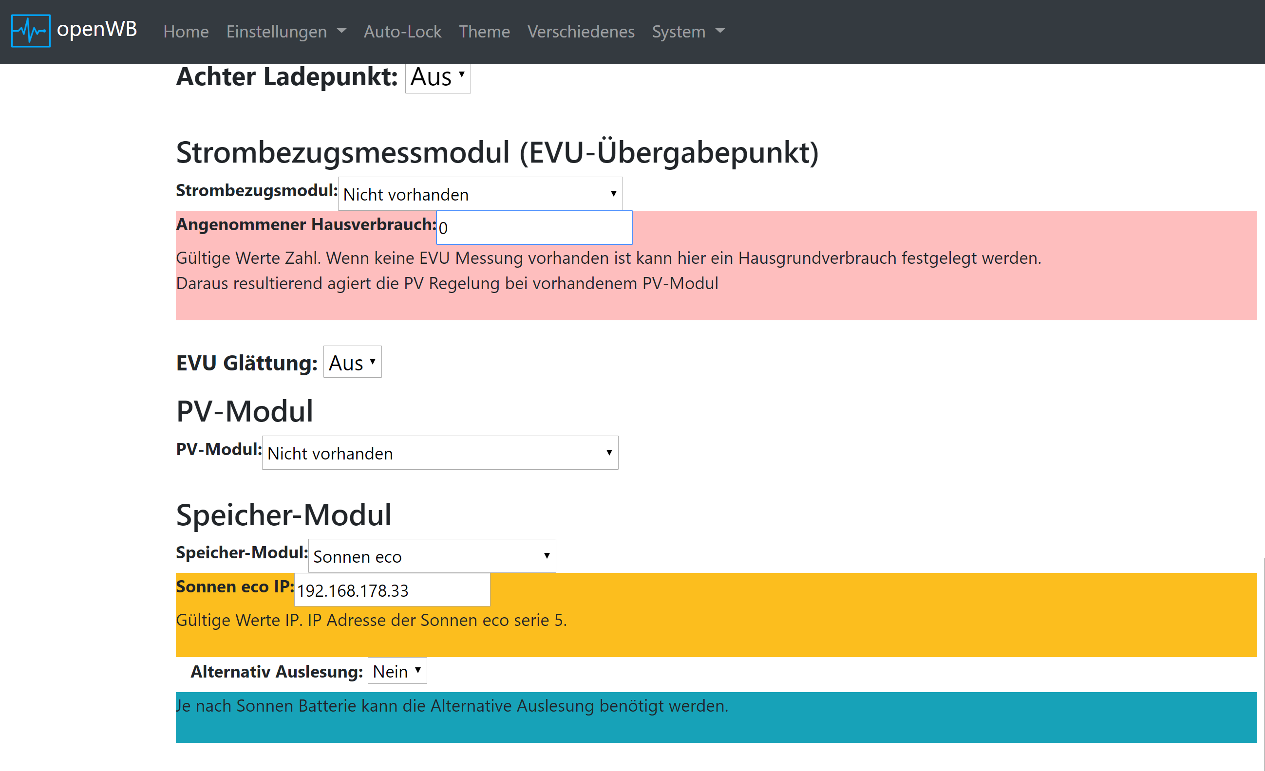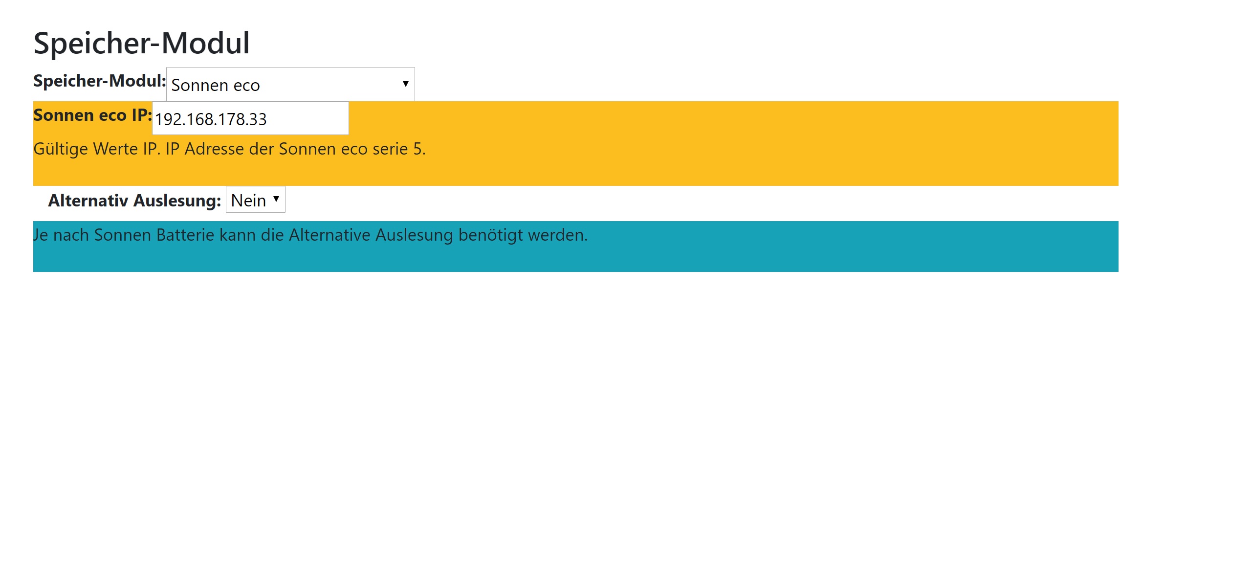 Das geht aber nur mit der alternativen Auslesung und die muss die Sonnen Batterie unterstützten.
