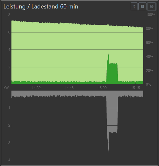 Erst noch mal zum Vergleich die Ansicht Leistung / Ladestand heute: