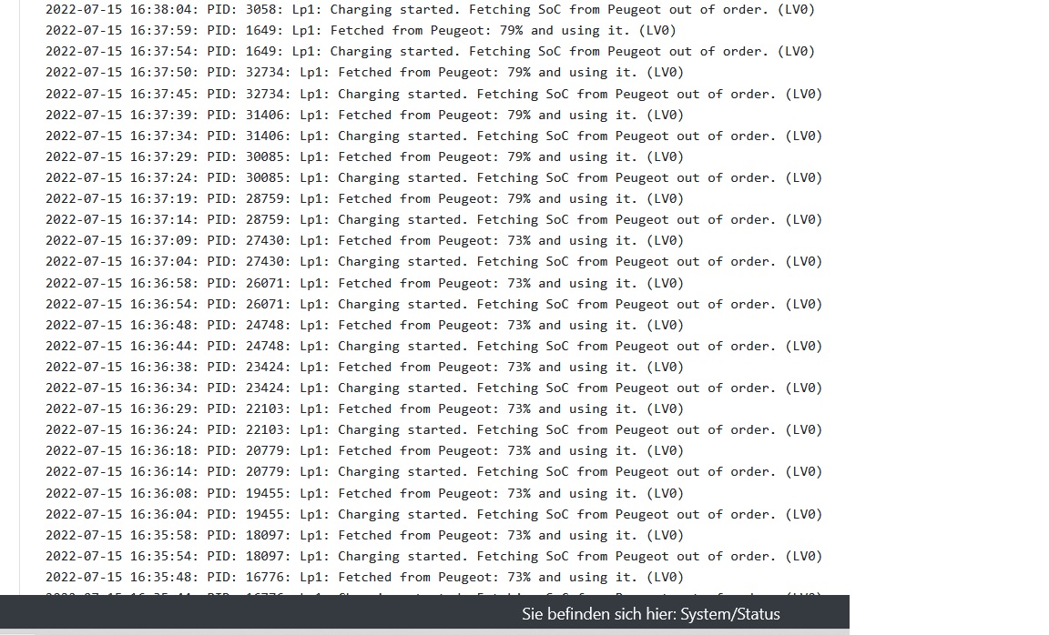Ist es denn bei dir auch so, dass in der EV SoC Log (unter Status) alle 10 Sekunden steht, Charging started?
