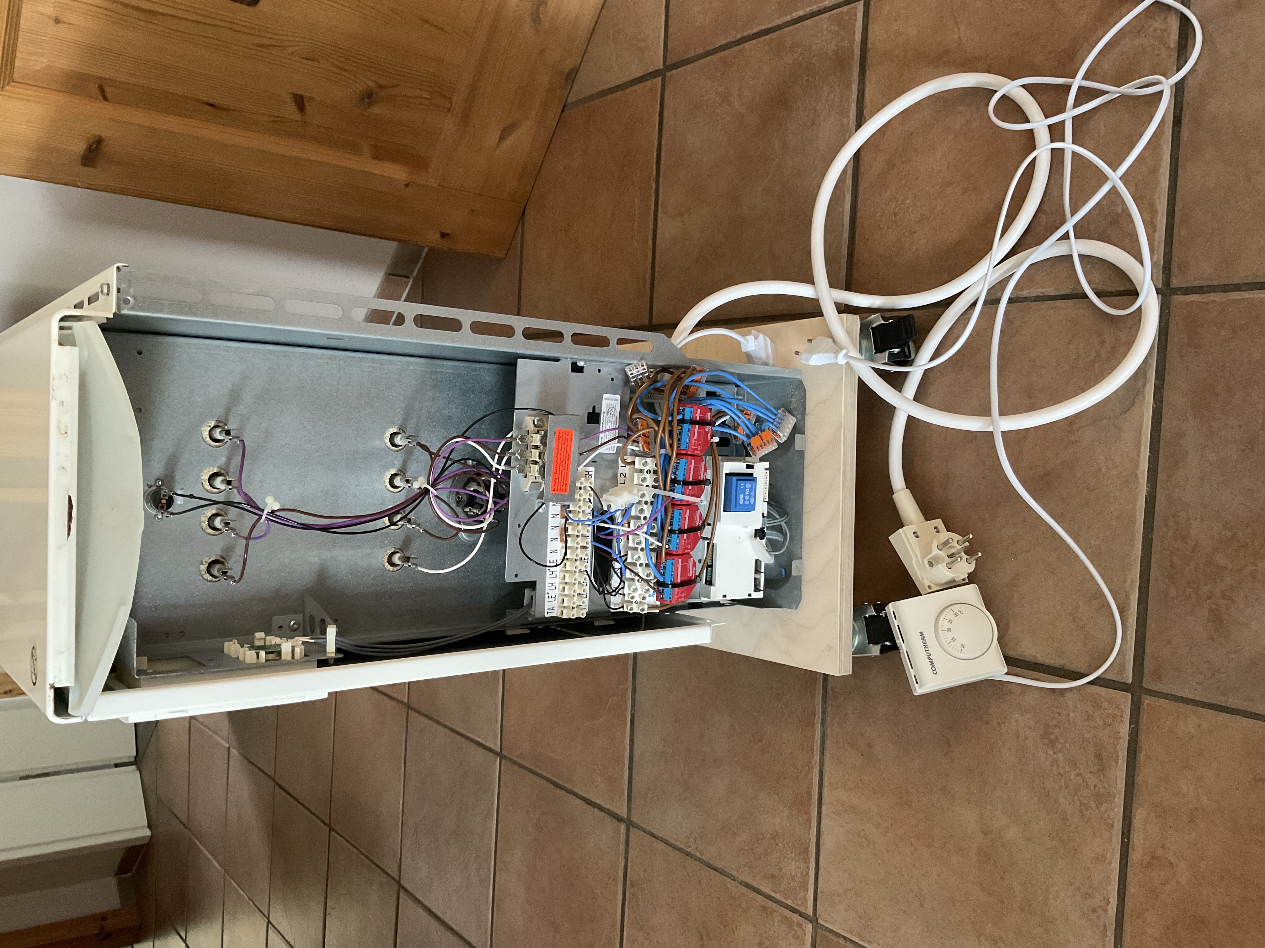 Der Ofen ist permanent (24/7) 1-Phasig angeschlossen und hat 3 x 2 Heizungen, im Stern verschaltet - also insgesamt 3 Heizkreise, zu jeweils ca. 700 Watt.