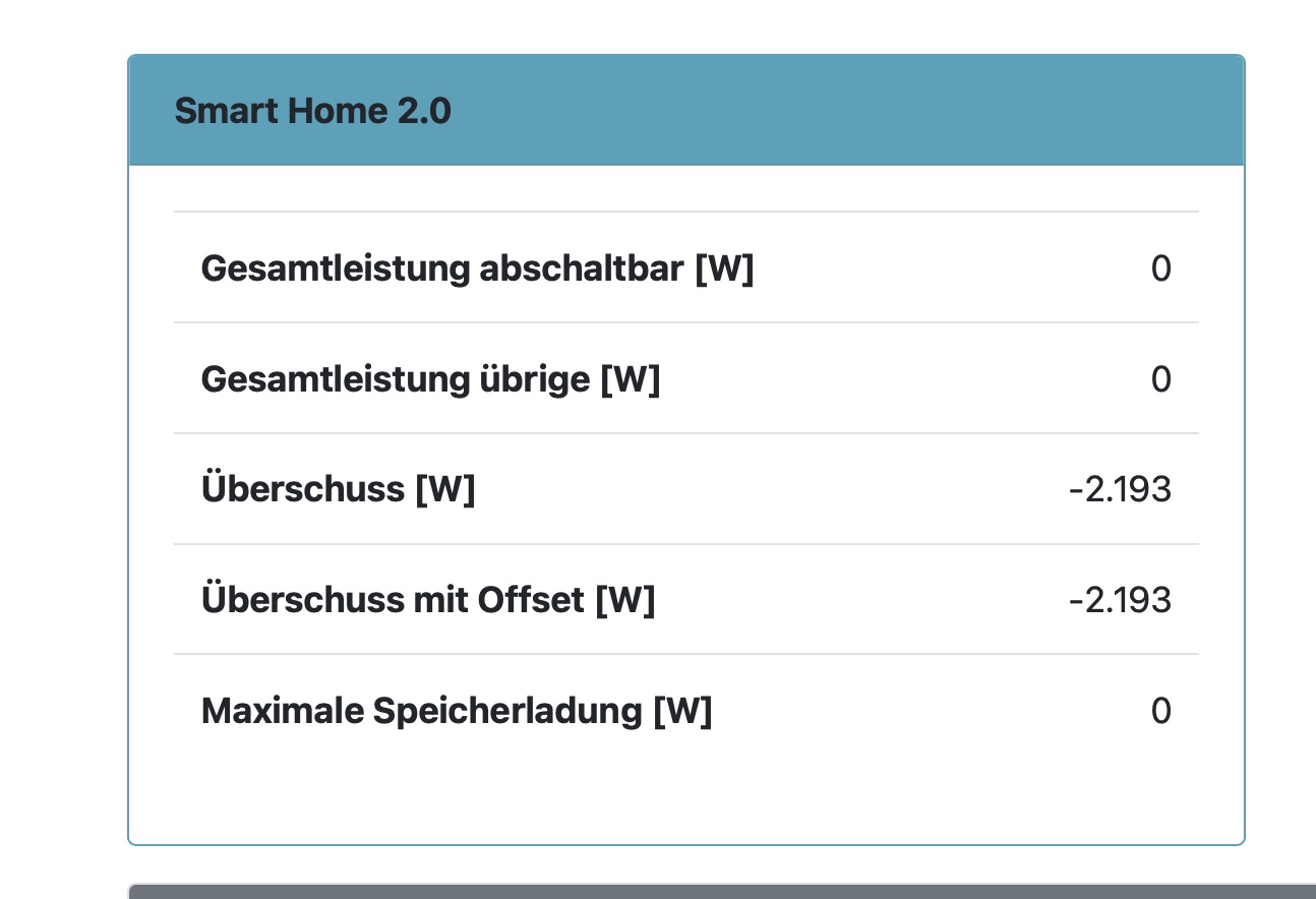 Im Status wird in der Tafel "Smarthome 2.0" permanent ein negativer Wert für den Überschuss angezeigt.