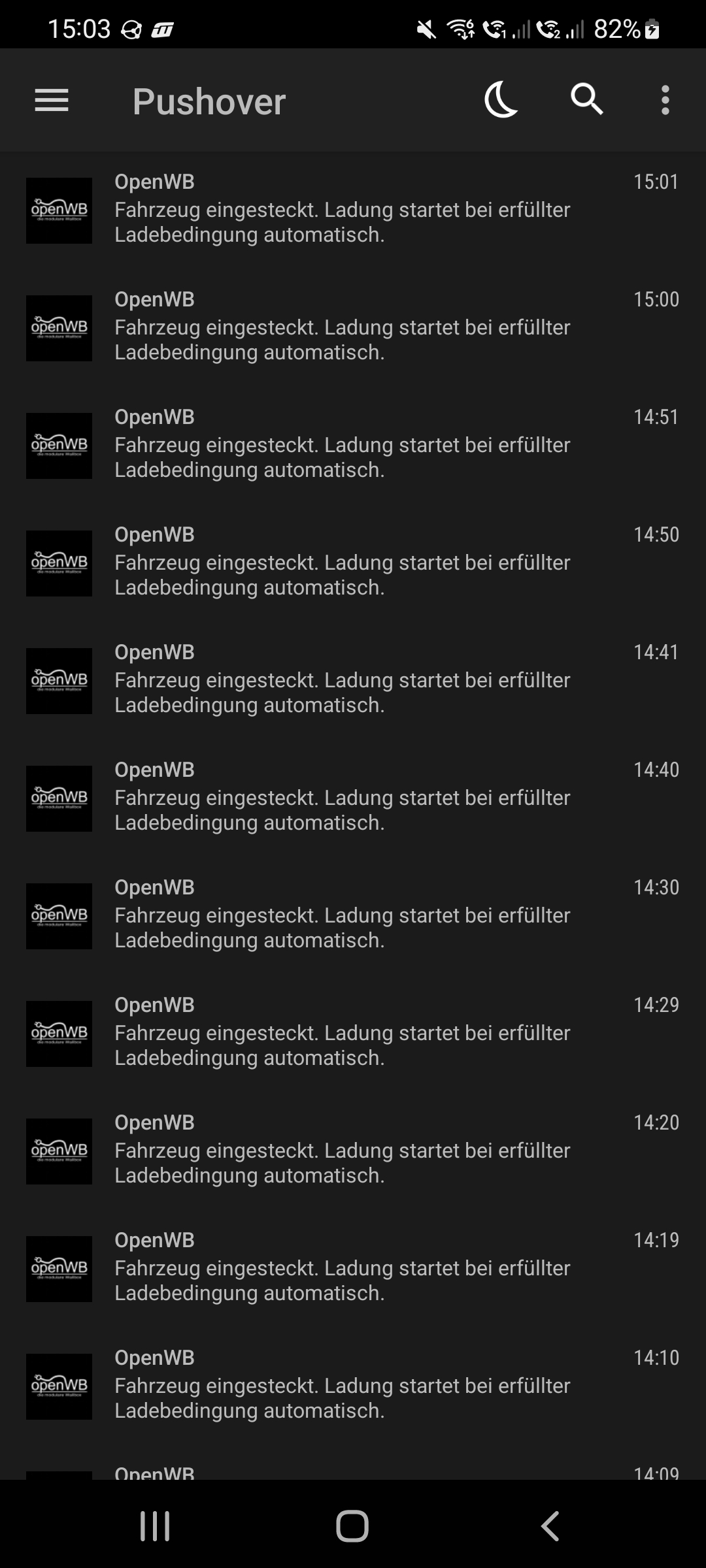 Hi, ich habe ab und zu das Problem im Minutentakt push Nachrichten zu bekommen. "Fahrzeug wurde eingesteckt...".