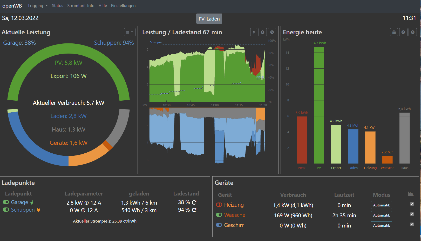 2022-03-12 11:24:36: PID: 9461: lla2 0 llv2 236.5 llas12 0 llas22 sofortll 16 hausverbrauch 1191 wattbezug 788 uberschuss -788 (LV1) at 1270 loadvars loadvars.sh