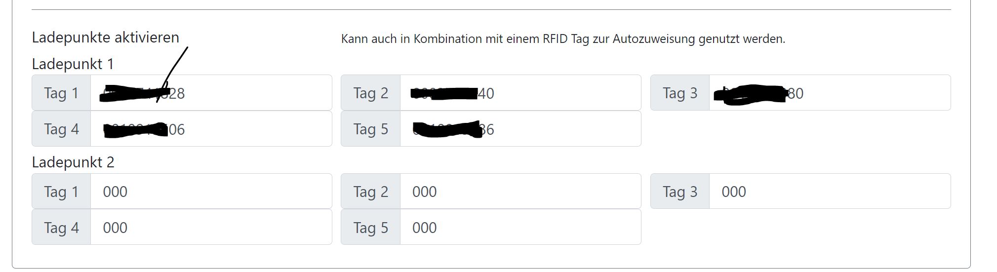 ich habe 5 verschiedene RFID Chibs hinterlegt die den Ladepunkt 1 aktivieren dürfen. Wo muss ich noch was einstellen das dann auch die Nummer des Chips ins Log übernommen wird ?