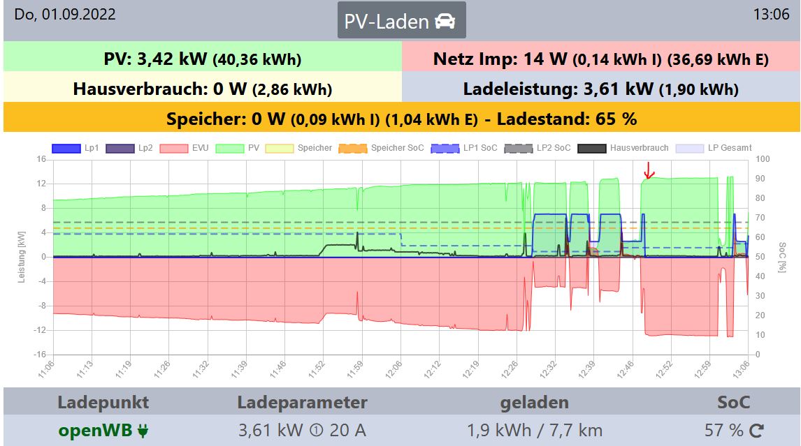2022-09-01 13:02:27: PID: 4333: alle Ladepunkte, Lademodus NurPV. Ladung geändert auf 6A (LV0)