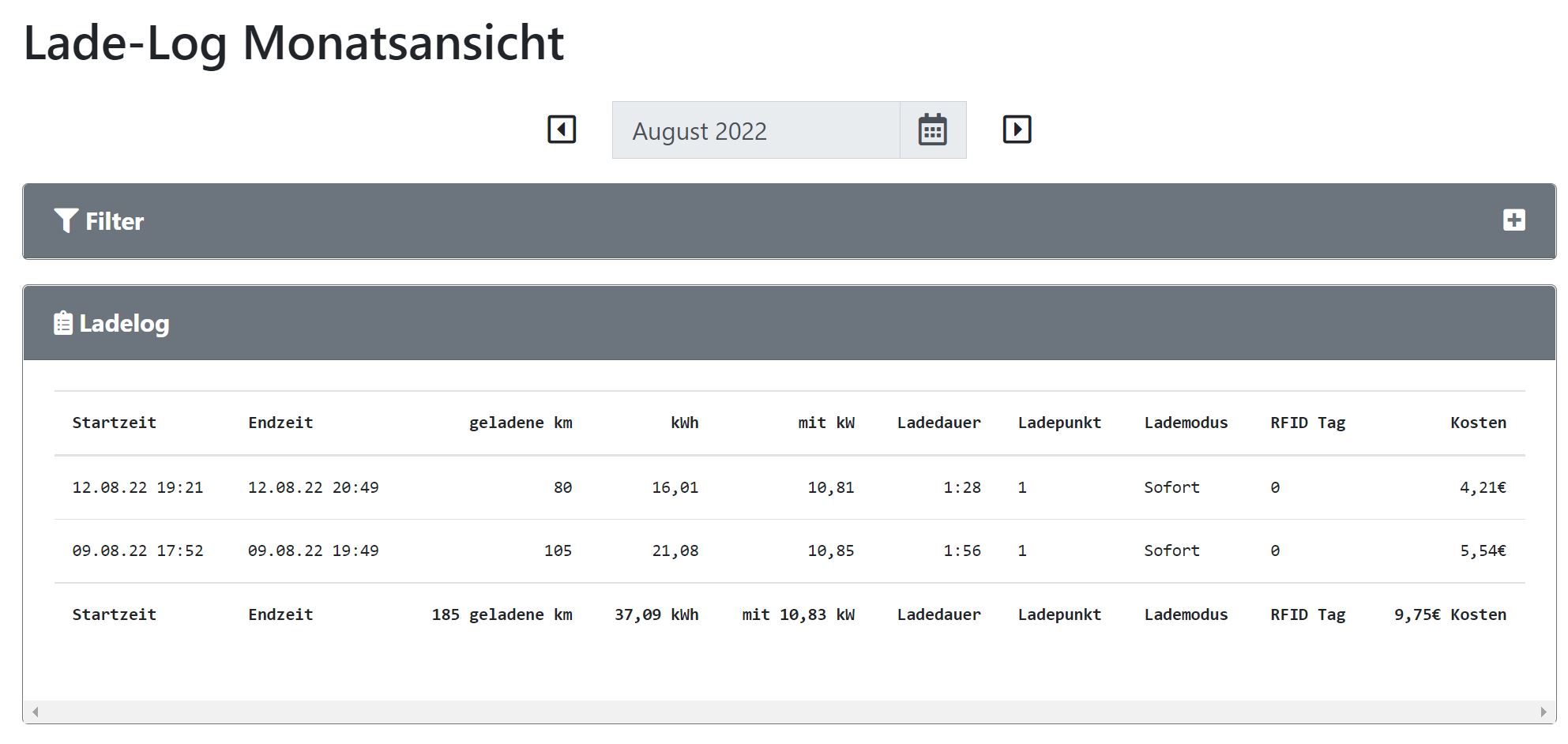 Hallo zusammen, ich habe das Problem das im LadeLog unter RFID Tag nur eine 0 und nicht die Nummer des RFID Chip angegeben ist.