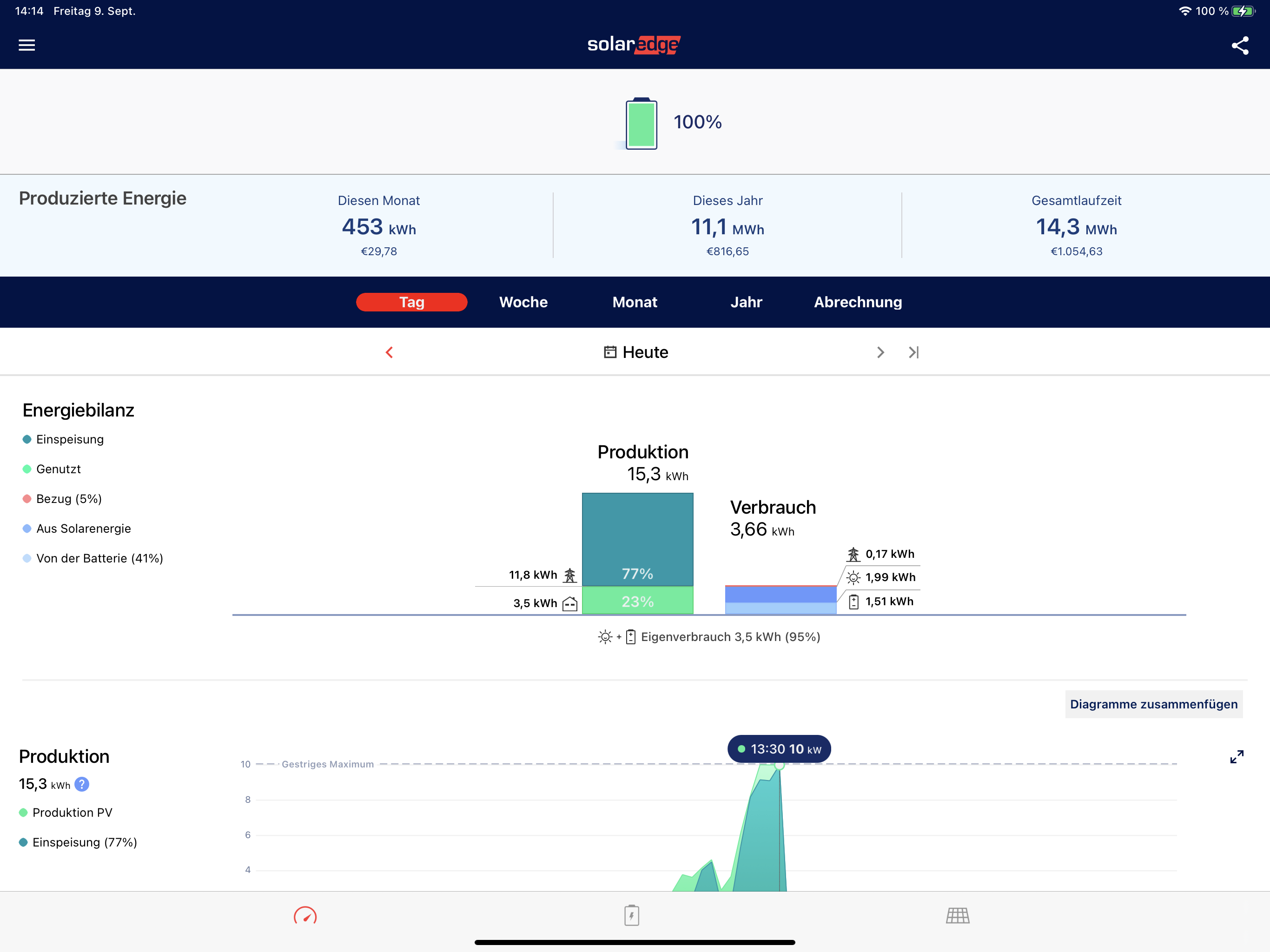 LenaK hat geschrieben: Do Sep 08, 2022 10:11 am Bitte einen Screenshot im Standard-Theme und vom Solaredge-Portal zum gleichen Zeitpunkt posten. In deinem Theme werden nicht alle Tageserträge angezeigt.