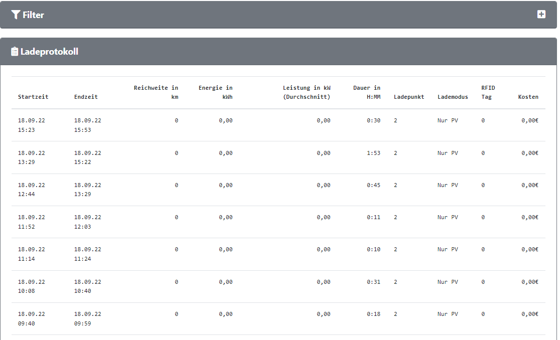 Ich habe gerade bei mir aktualisiert auf 1.9.278 (2022-09-20 14:14:30 +0200 [a7b9d4db] ), Auto umgeparkt zu LP2, Sofort-Laden gestartet, geht aber alles ganz normal. Stecker wird grün und Werte bei "geladen" kommen auch. Lässt sich also nicht komplett generalisieren. Steht denn etwas im Log? (Loglevel in den Einstellungen auf Debug stellen und dann sind insbesondere die Werte von dem Moment an in dem du auf Sofort-Laden klickst +~30 Sekunden interessant.Ghostryder2000de hat geschrieben: So Sep 18, 2022 7:59 amIch habe gestern die Nightfly 1.9.278 installiert. Leider bekomme ich heute beim Laden keine Werte bei "geladen" und der „Stecker“ wird nicht grün.