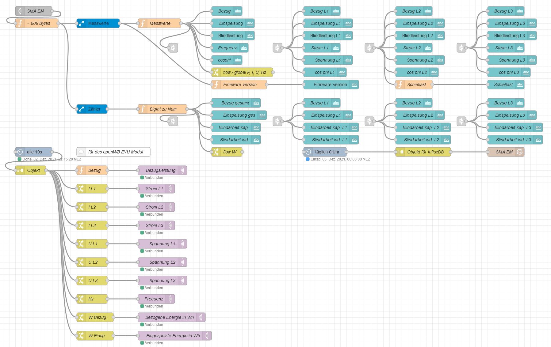 Da das MQTT EVU Modul ergänzt wurde, habe ich meinen Node-Red Flow erweitert.
