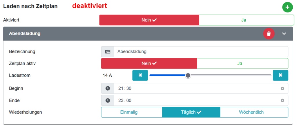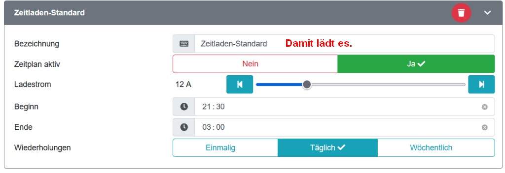 Die Ladeprofile enthalten folgende Parameter für Zeitladen: