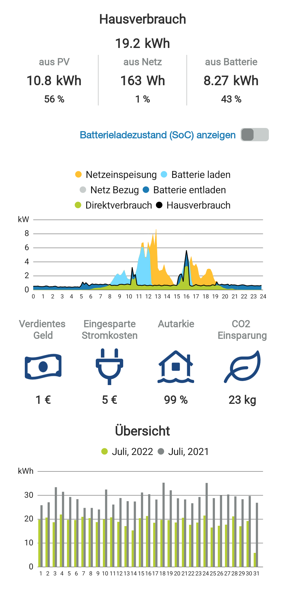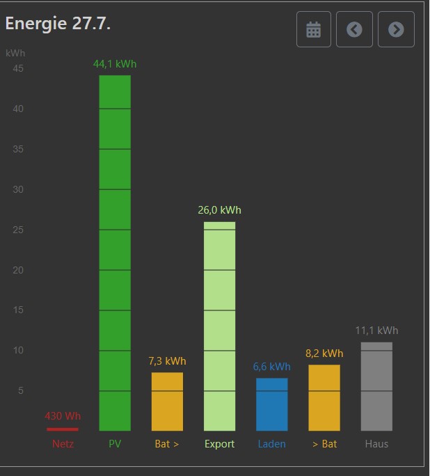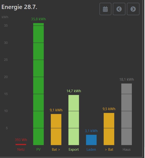 Wie gesagt, die Strommenge die wir vom Stromanbieter beziehen fehlt, alles andere funktioniert wieder.
