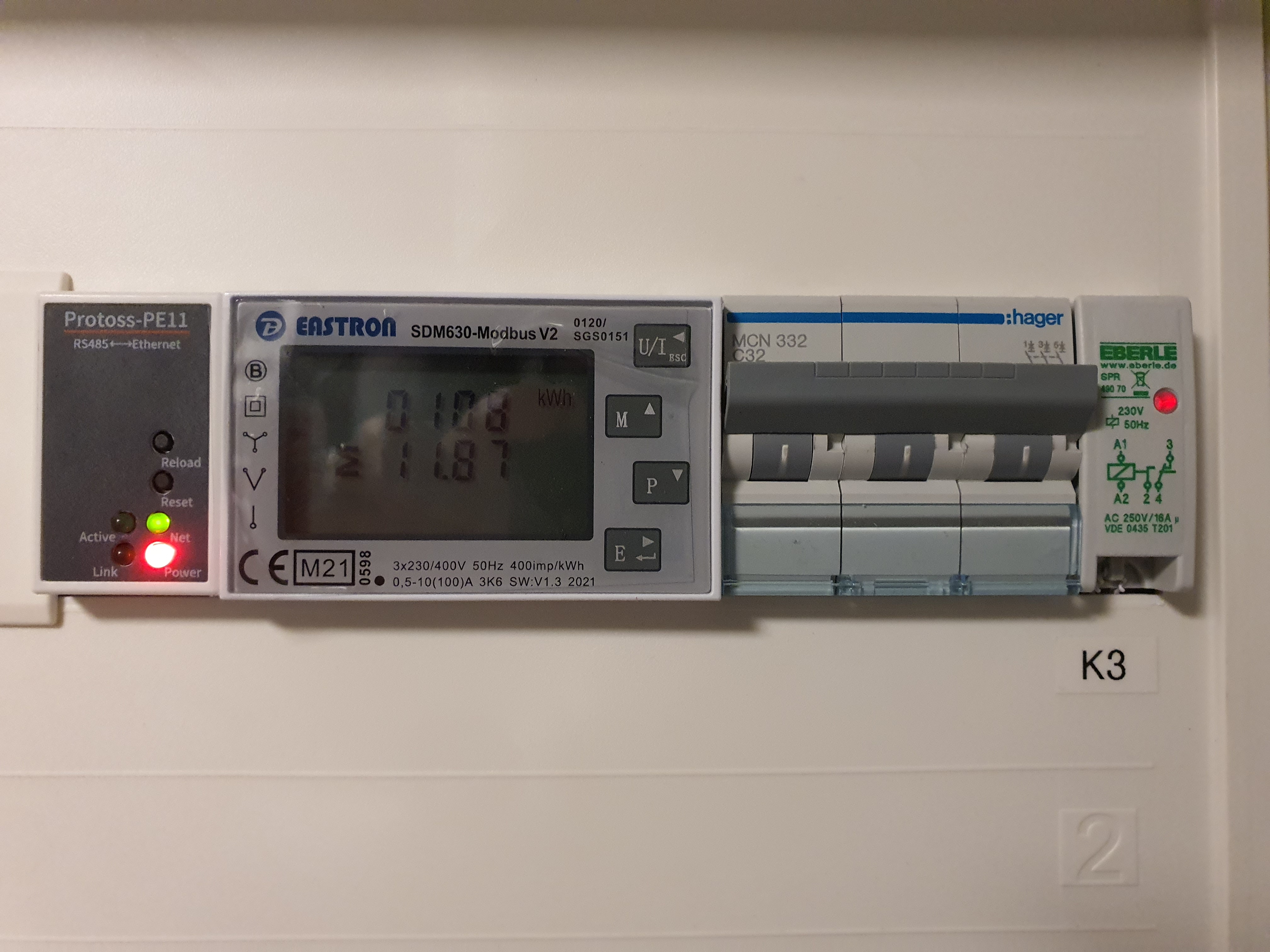 Verbaut wurden EASTRON SDM630 -Modbus v2 mit Protoss-PE11 jeweils für PV und EVU.
