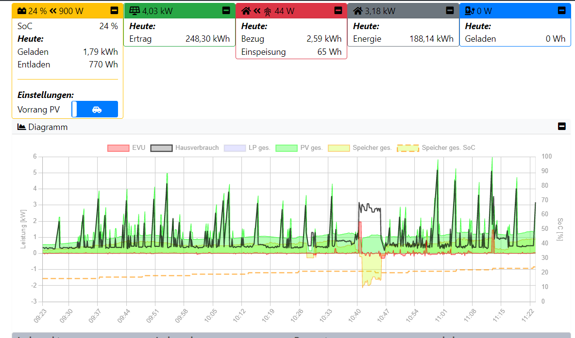 {'get': {'daily_imported': 10914.48, 'daily_exported': 3498.26, 'fault_str': 'Kein Fehler.', 'fault_state': 0, 'power': -651.0, 'soc': 70, 'imported': 47020.92, 'exported': 46395.52}}