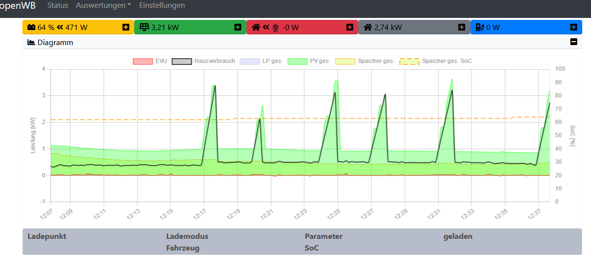 Heute beim Aufladen des Speichers erscheinen unsinnig hohe PV Spitzen, die den Hausverbrauch mit hochziehen.
