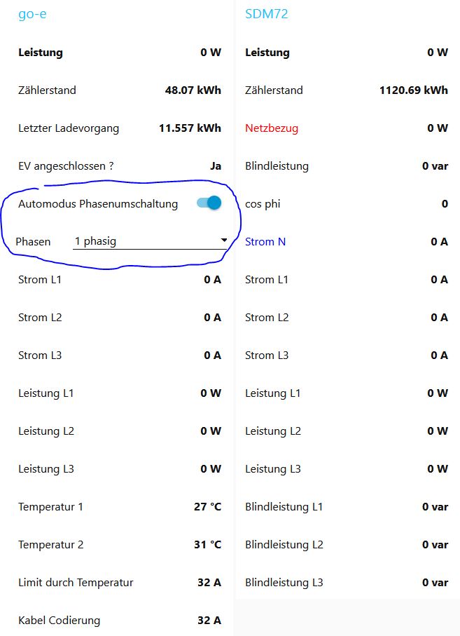 Ich habe eine openWB Buchse mit automatischer Phasenumschaltung ab Werk und als 2. LP einen go-e, welcher über openWB nicht und auch in Zukunft nicht unterstützt werden wird. (Phasenumschaltung)