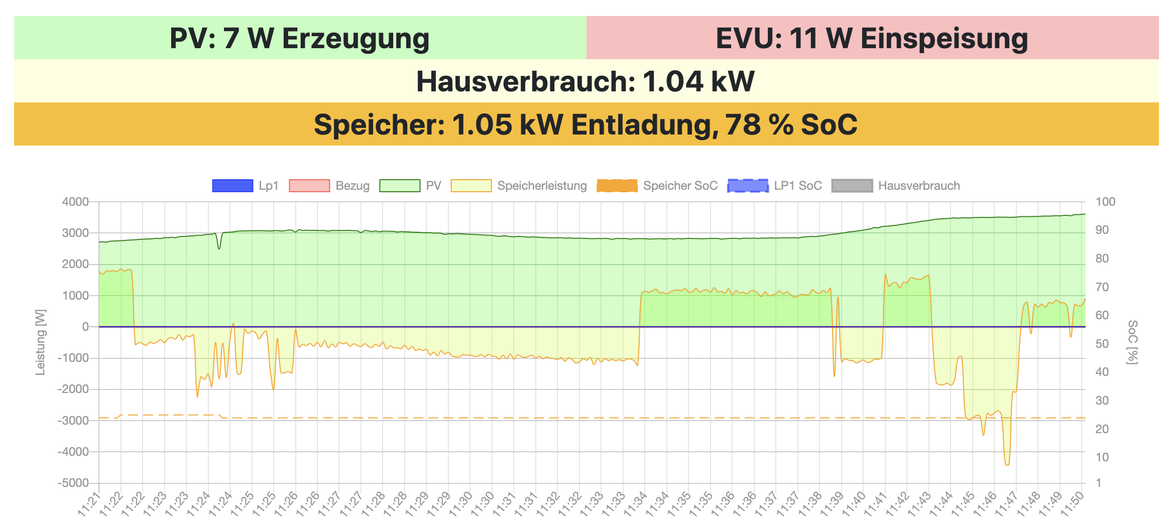 Der Speicher scheint generell komisch. Endlädt konstant mit 1.05 kW egal was der Graph macht.