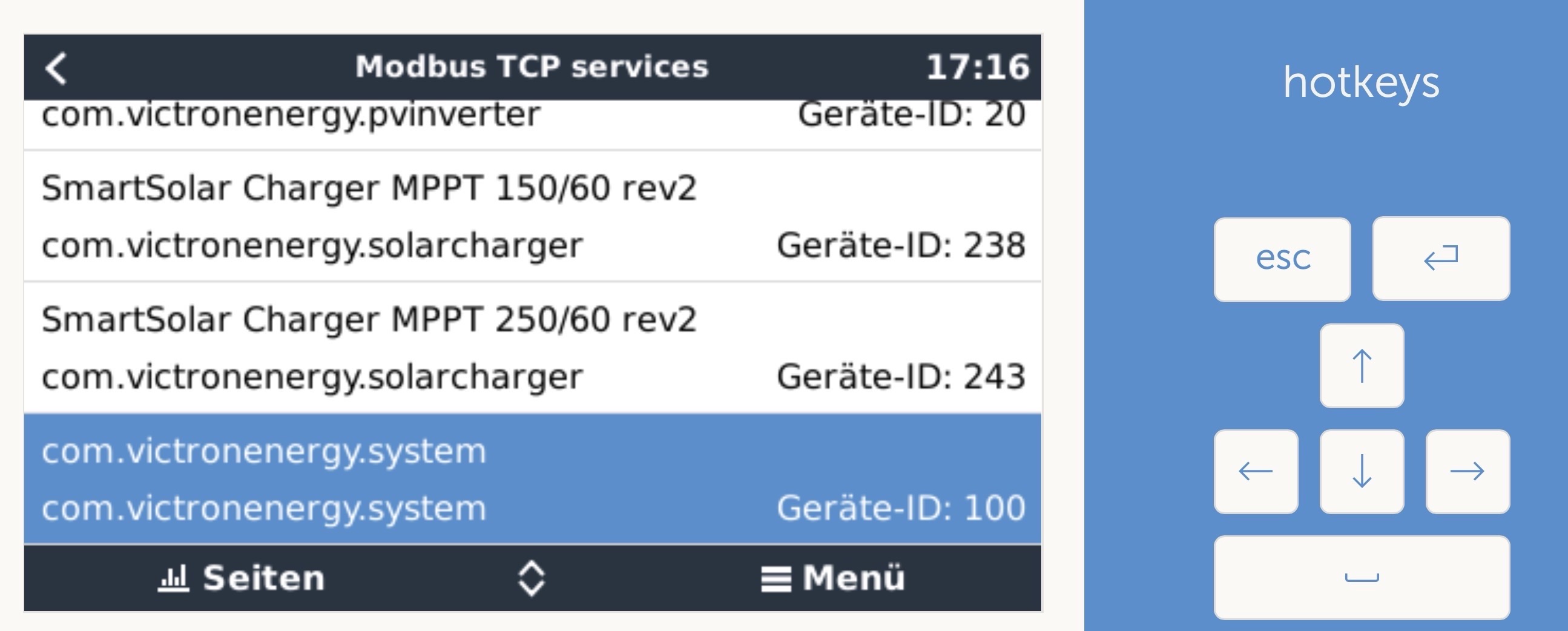 Dass ist richtig aber über Modus bekomme ich nur die Daten der Einzelnen Geräte also müsste ich noch ein zusätzliches PV Modul mit Victron MPPT und anderer Modus ID einrichten.