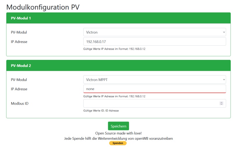 aiole hat geschrieben: Mo Nov 21, 2022 4:09 pm Victron hält die Daten aller DC/MPPT-WR vor. D.h., das eine PV-SW-Modul sollte für den Abruf des Victron-GX ausreichen. Es gibt dann vermutlich nur die Gesamt-PV-Erzeugung, was jedoch für eine korrekte Hausverbrauchsberechnung ausreicht.