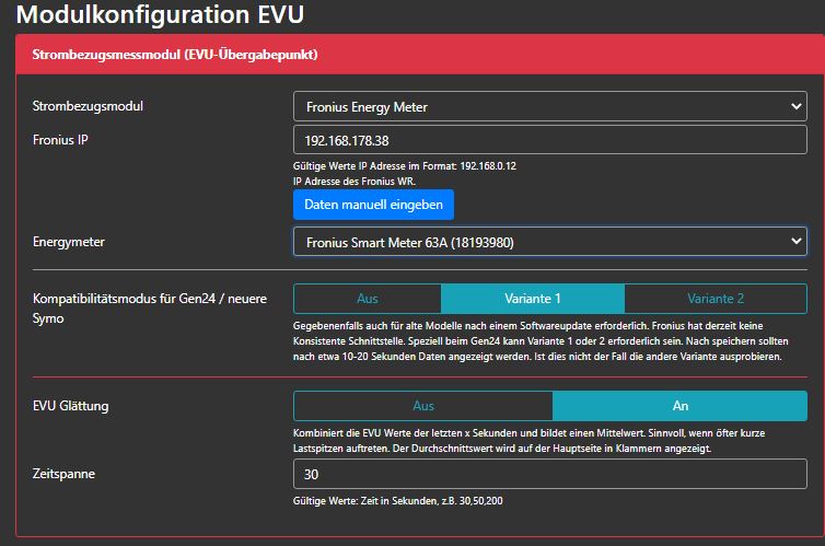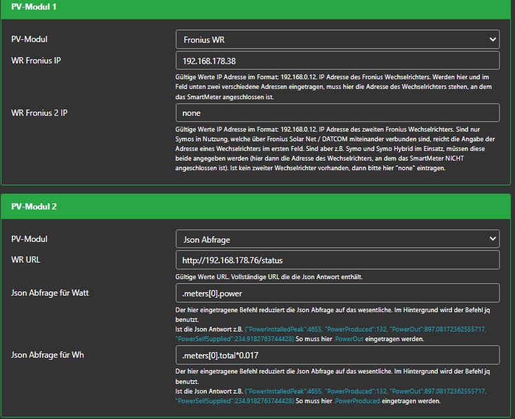 eigentlich wollte ich nur meinen selbstgebauten LIFEPO4 Speicher über das Speichermodul einbinden und mir die kwh für Ladung bzw. Entladung zusätzlich anzeigen lassen.