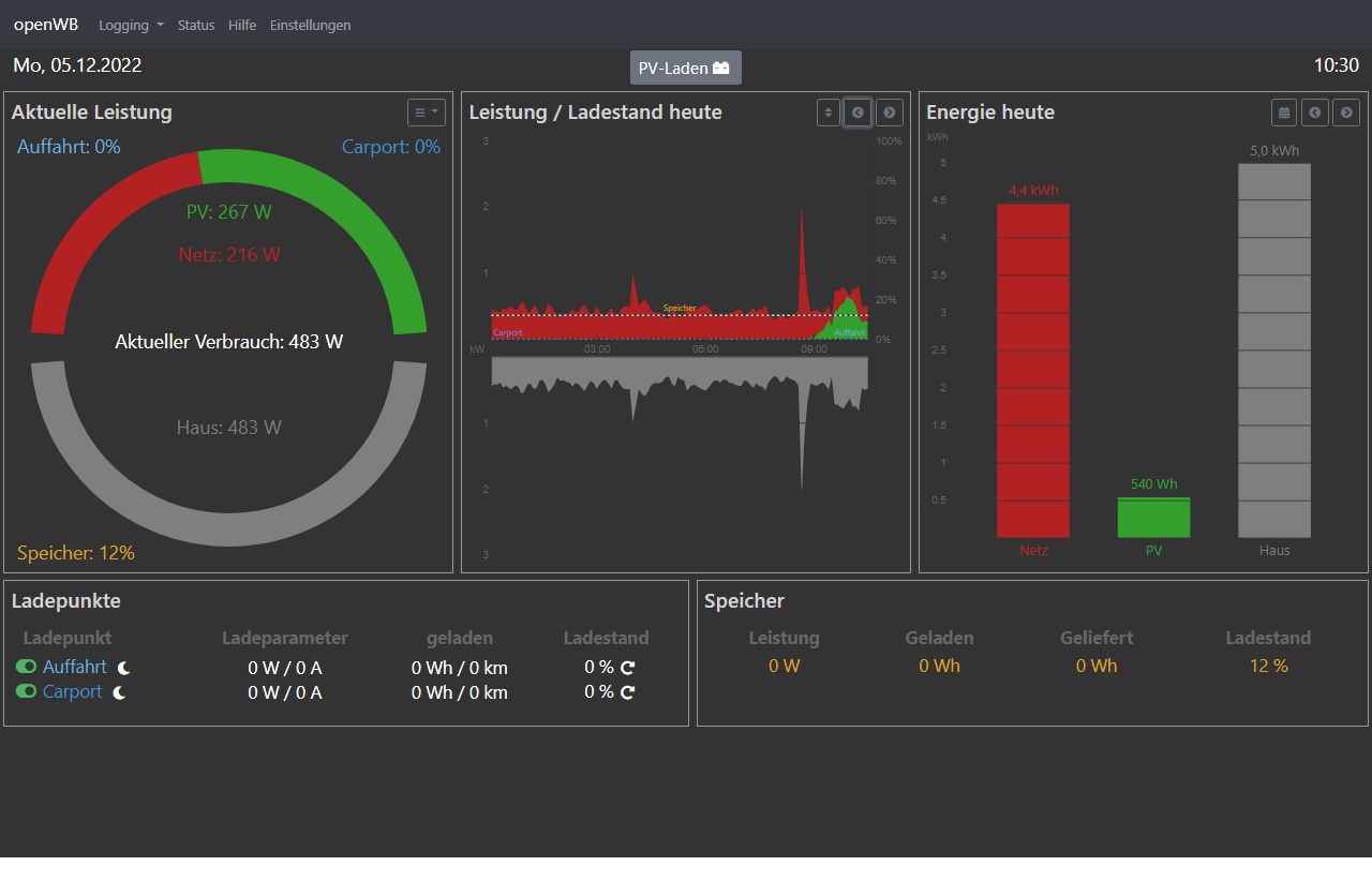 Mittlerweile sind die Spikes weg aber der Strombezug ist nur noch im 120min Intervall zu sehen. Im Tageschart ist der Grundbezug, warum auch immer, weg und ich sehe nur die Max Werte. Ebenso ist in der "Energie heute" Seite die Werte für den Strombezug / Hausverbrauch am Tage stark schwankend, mal passen sie beim erneuten Aufruf der Startseite der openWB sind total falsche Werte dort zu sehen.