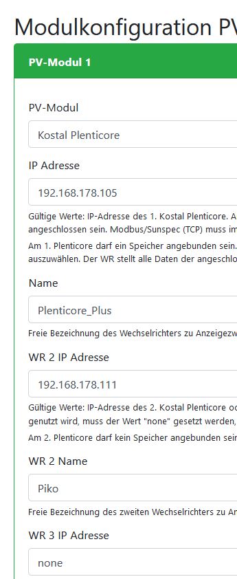 Dann hab ich den Piko als PV Modul 2 ausgewählt. Dort wurde automatisch die .112 angezeigt.