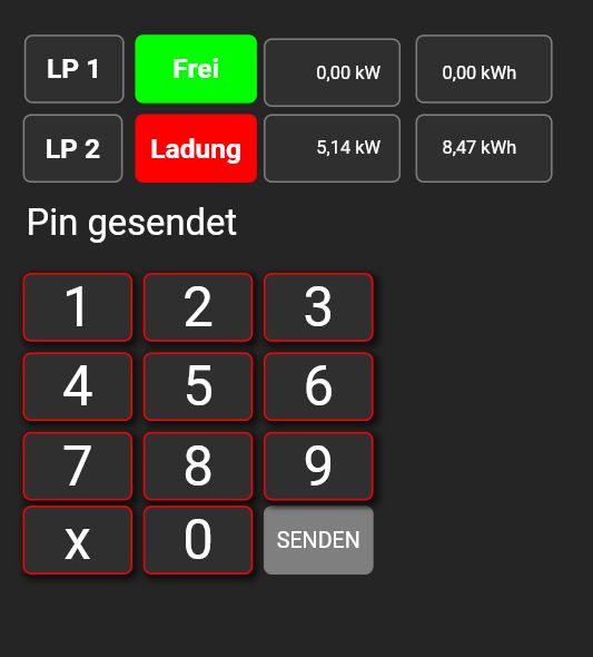 Ich denke, das Theme "Simple" würde sich am besten eignen, um den zuletzt gelesenen RFID-Chip und den damit entsperrten Ladepunkt reinzubasteln. Bei der Stop-Taste wird's schon schwieriger, da ja eine bei mehreren Ladepunkten nicht ausreicht und man sicherlich nicht möchte, dass spielende Kinder Ladevorgänge unterbrechen. Die geladenen kWh anzuzeigen macht dann auch keinen Sinn mehr, da wäre es vielleicht besser eine Mail zu versenden. Und um alle (ladenden) Ladepunkte anzuzeigen, reicht vermutlich der Platz irgendwann nicht mehr aus und scrollen will ja bestimmt auch keiner.