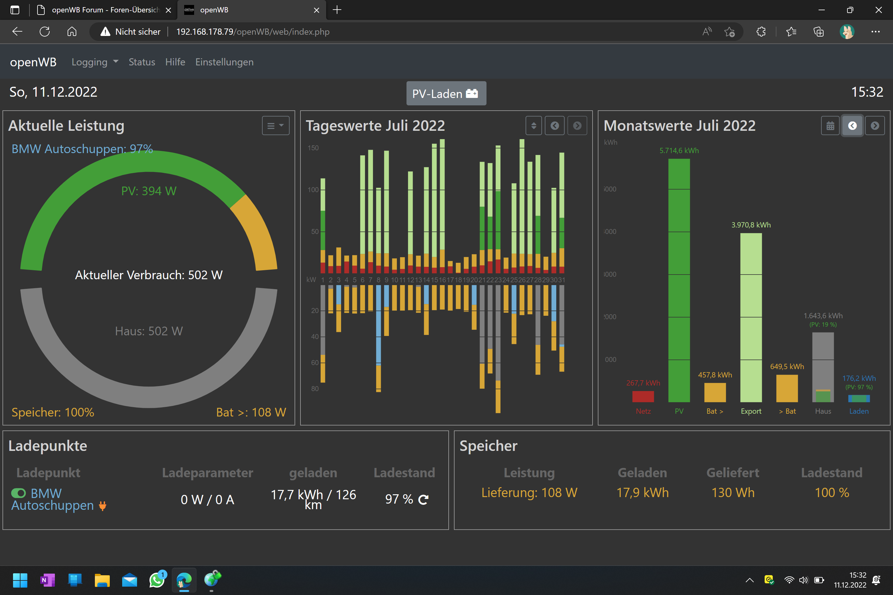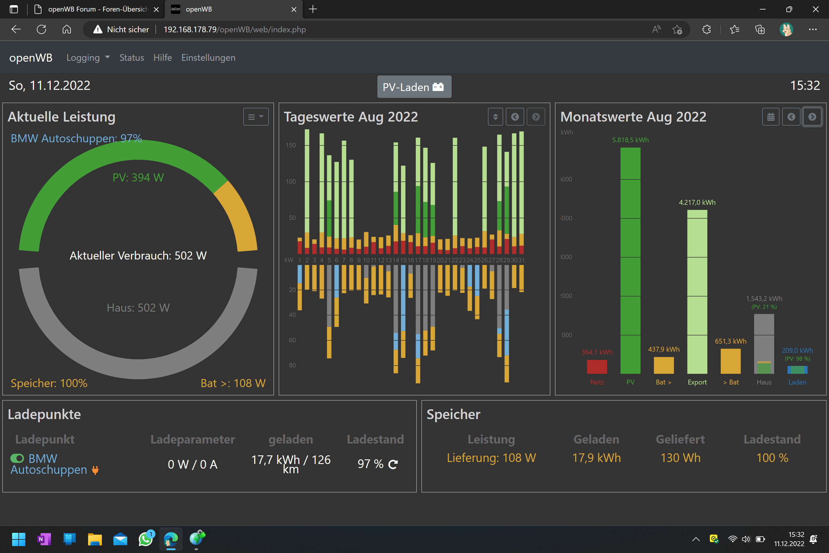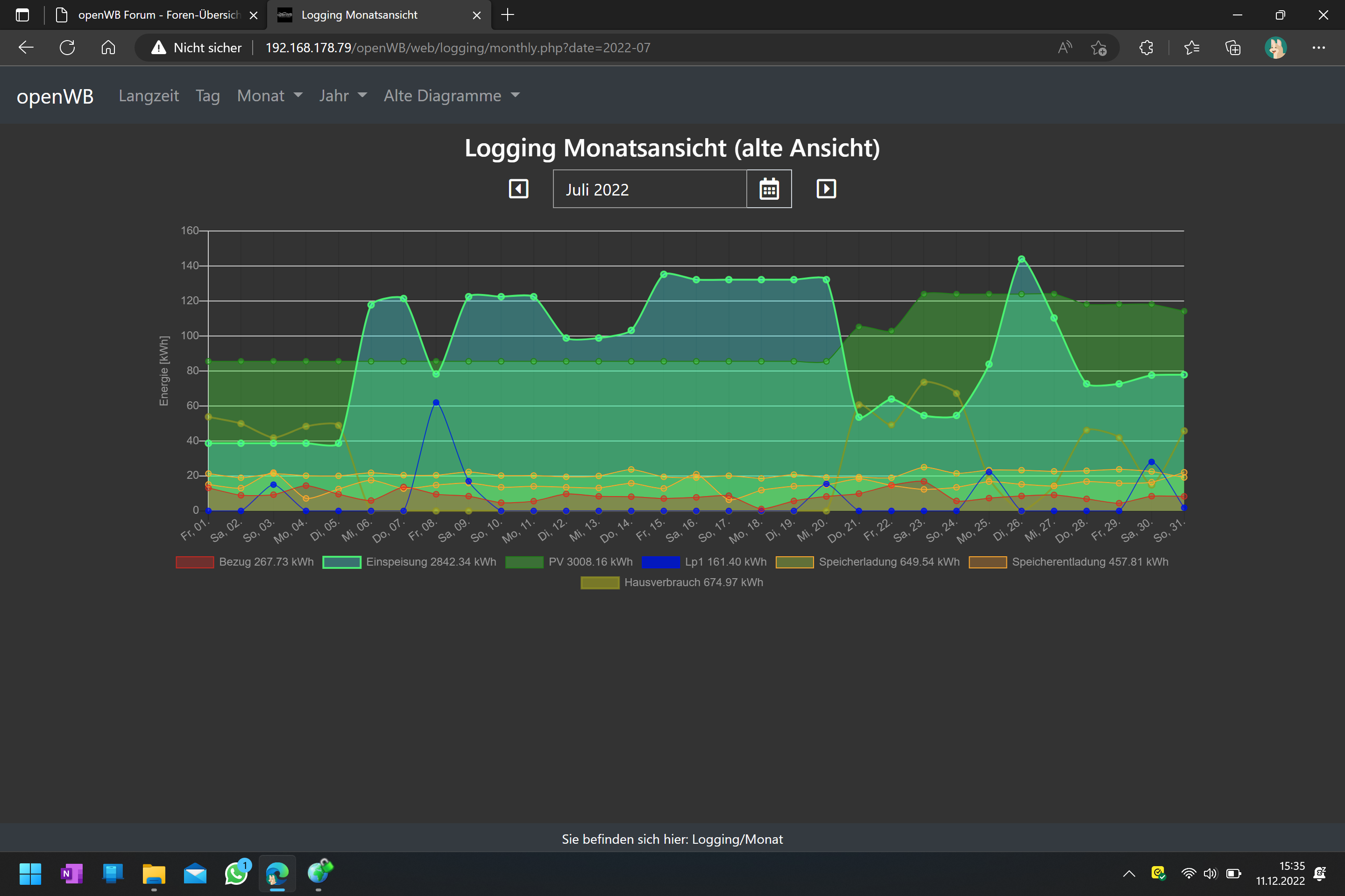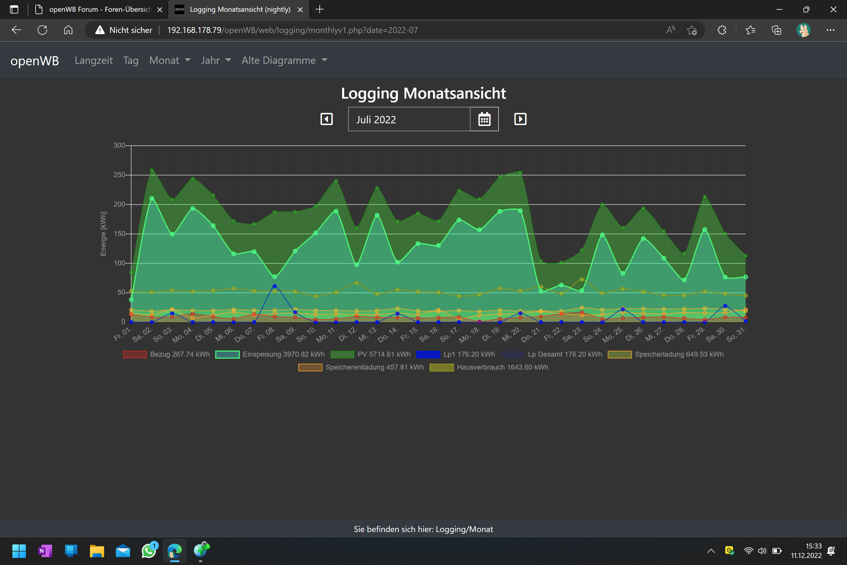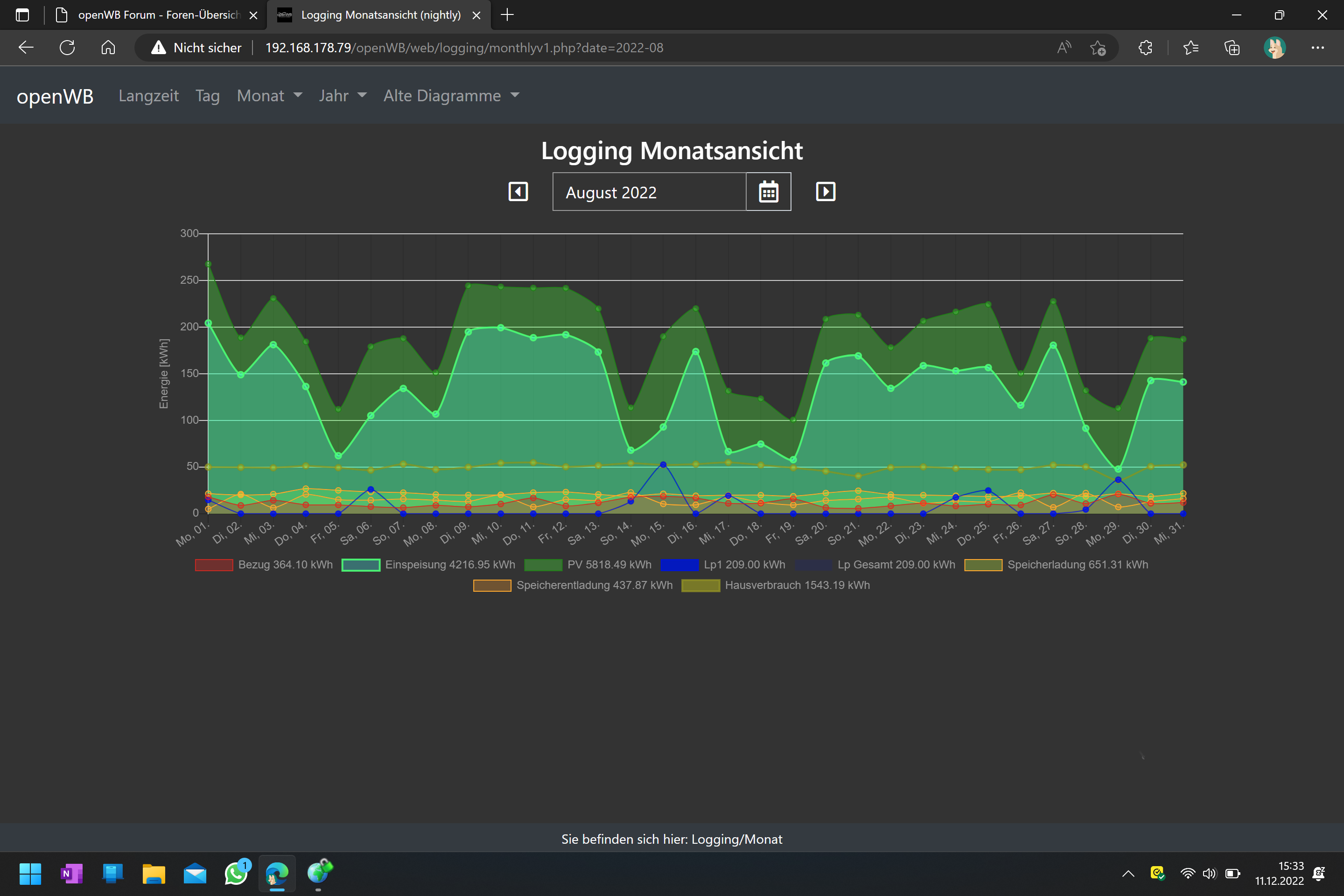 Was seitens des tagesbasierten Loggings wirklich gut funktioniert (inklusive die korrekte Errechnung des PV-Anteils