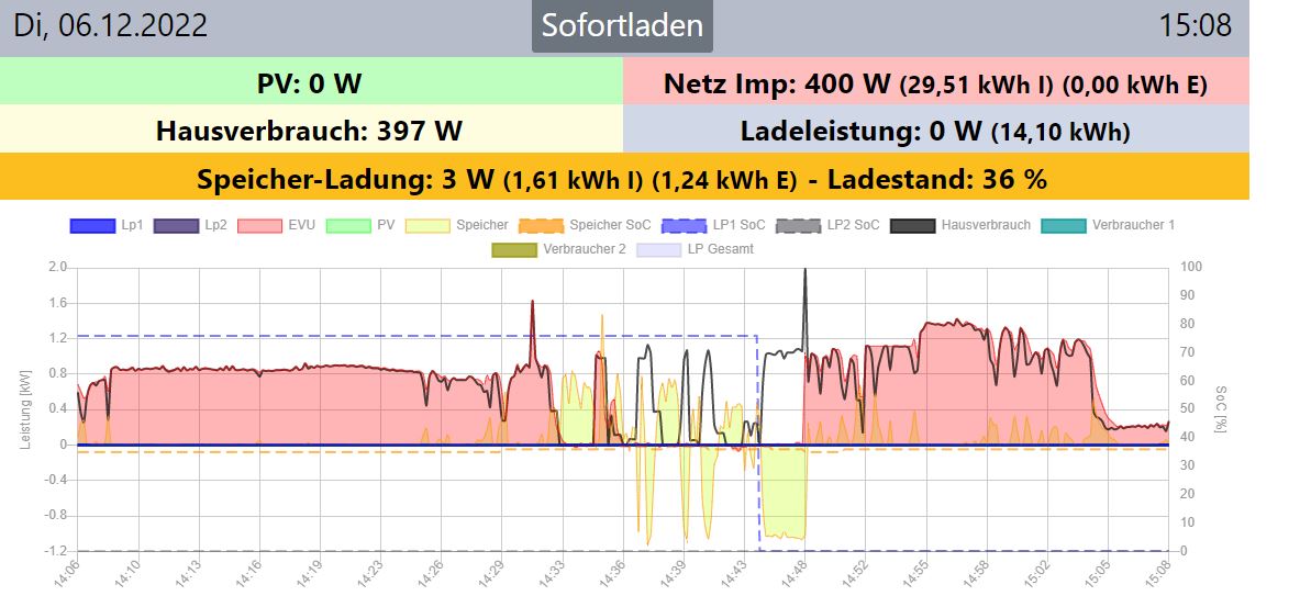 Nach Änderung auf Variante 2 und Reboot der OpenWB ist die Anzeige der PV Leistung da, aber dafür werden der Hausverbrauch und der Netzimport/Export falsch angezeigt.