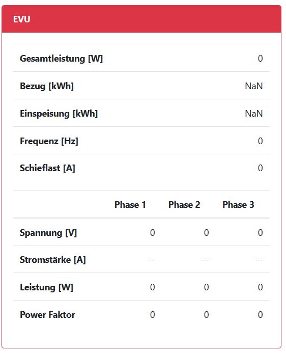 Ich habe zurzeit ein Problem mit der Anzeige der EVU Werte meiner OpenWB im Satus.