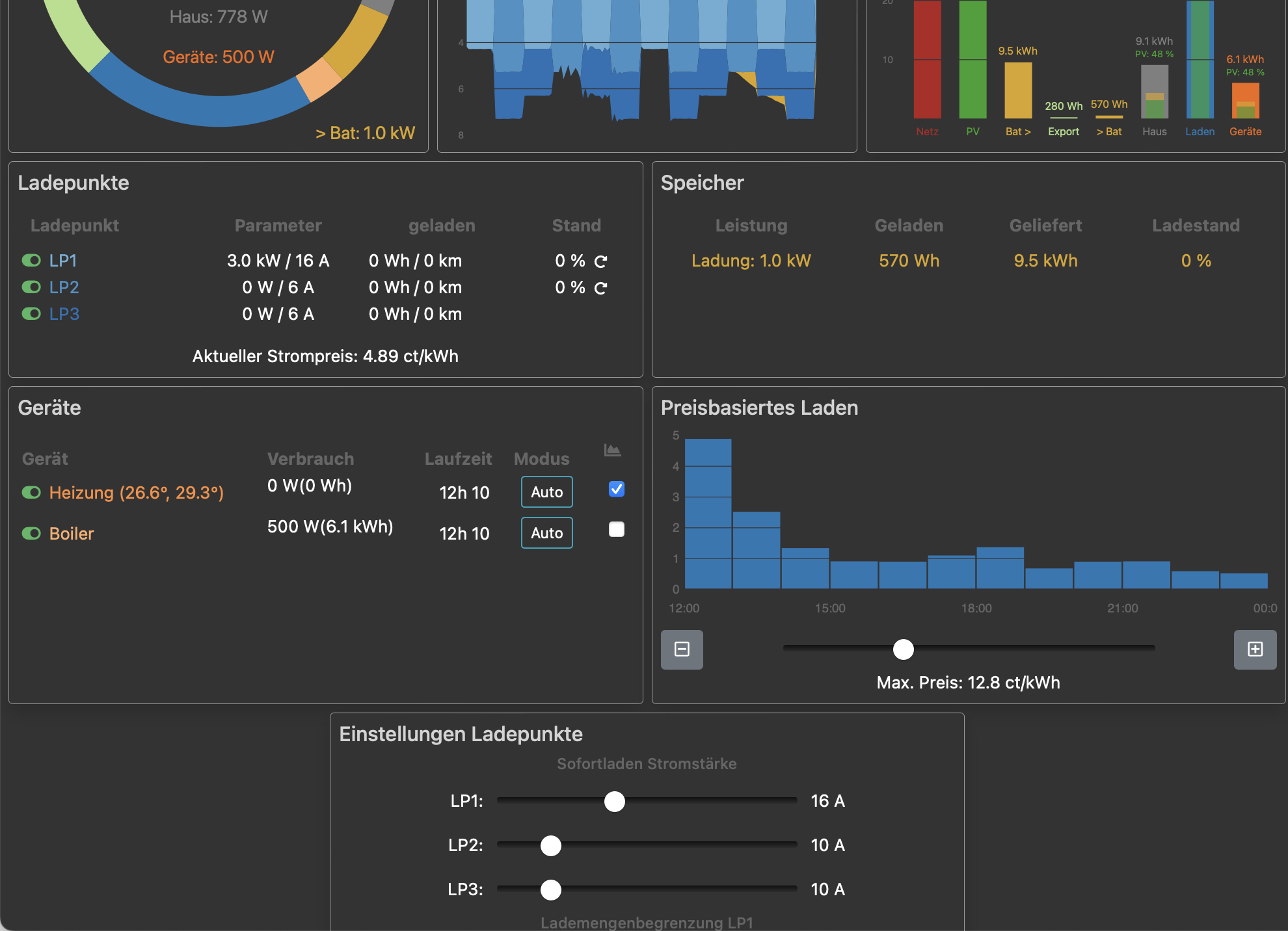 - Breite der Fenster für Ladepunkte, Smarthome, Batterie etc. kann ausgewählt werden (2 oder 3 pro Zeile)