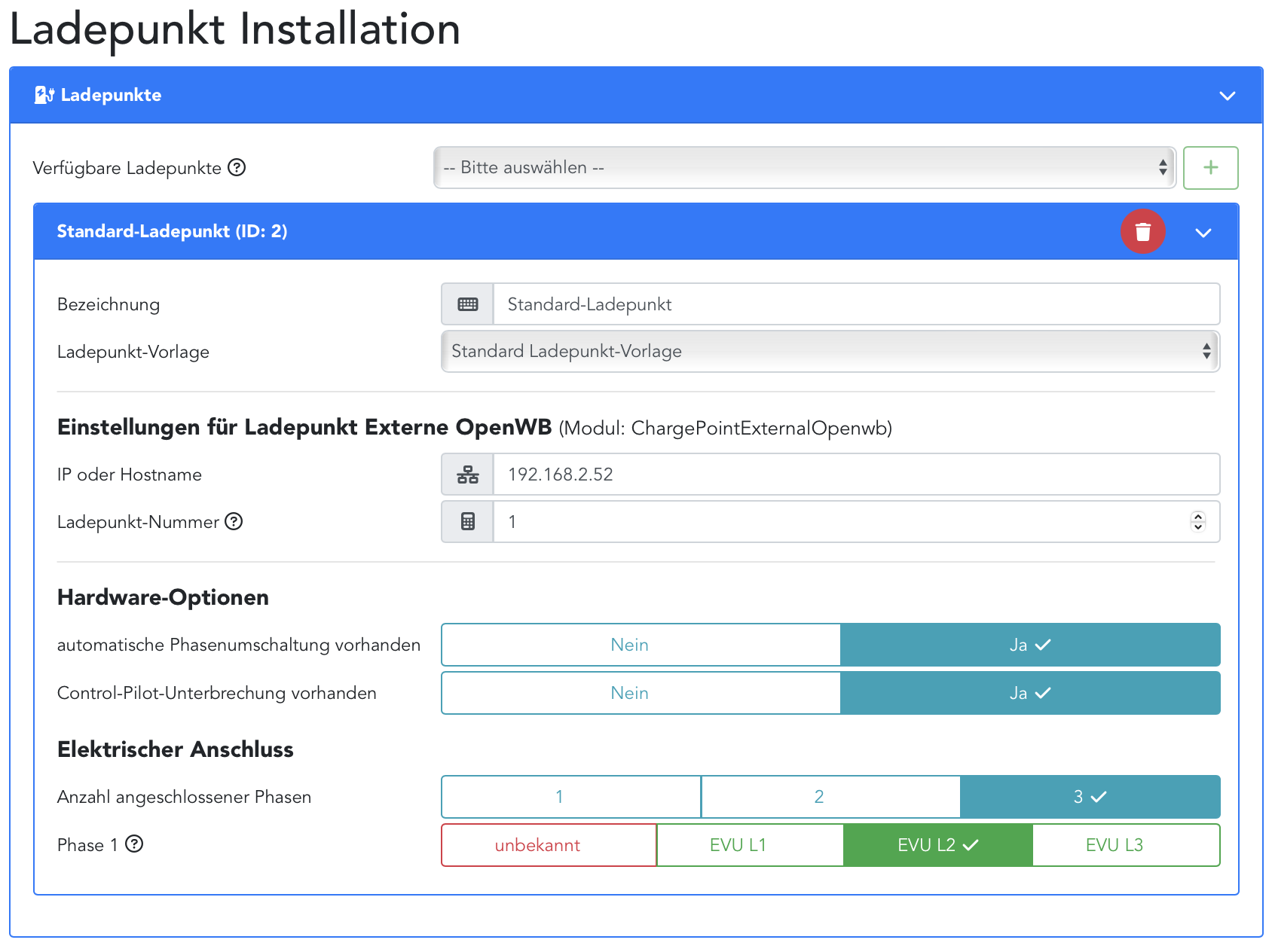 Der Screenshot des Ladepunktes ist jetzt ohne angestecktes Fahrzeug. Ansonsten wurde hier auch alles korrekt angezeigt, also Steckersymbol und Ladeparameter inklusive der 3 für 3-phasig.