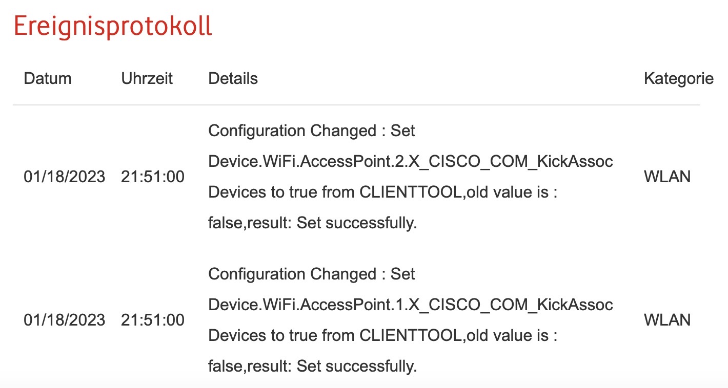 Um diese Zeit gibt es im Ereignisprotokoll des Modems wieder einen Eintrag