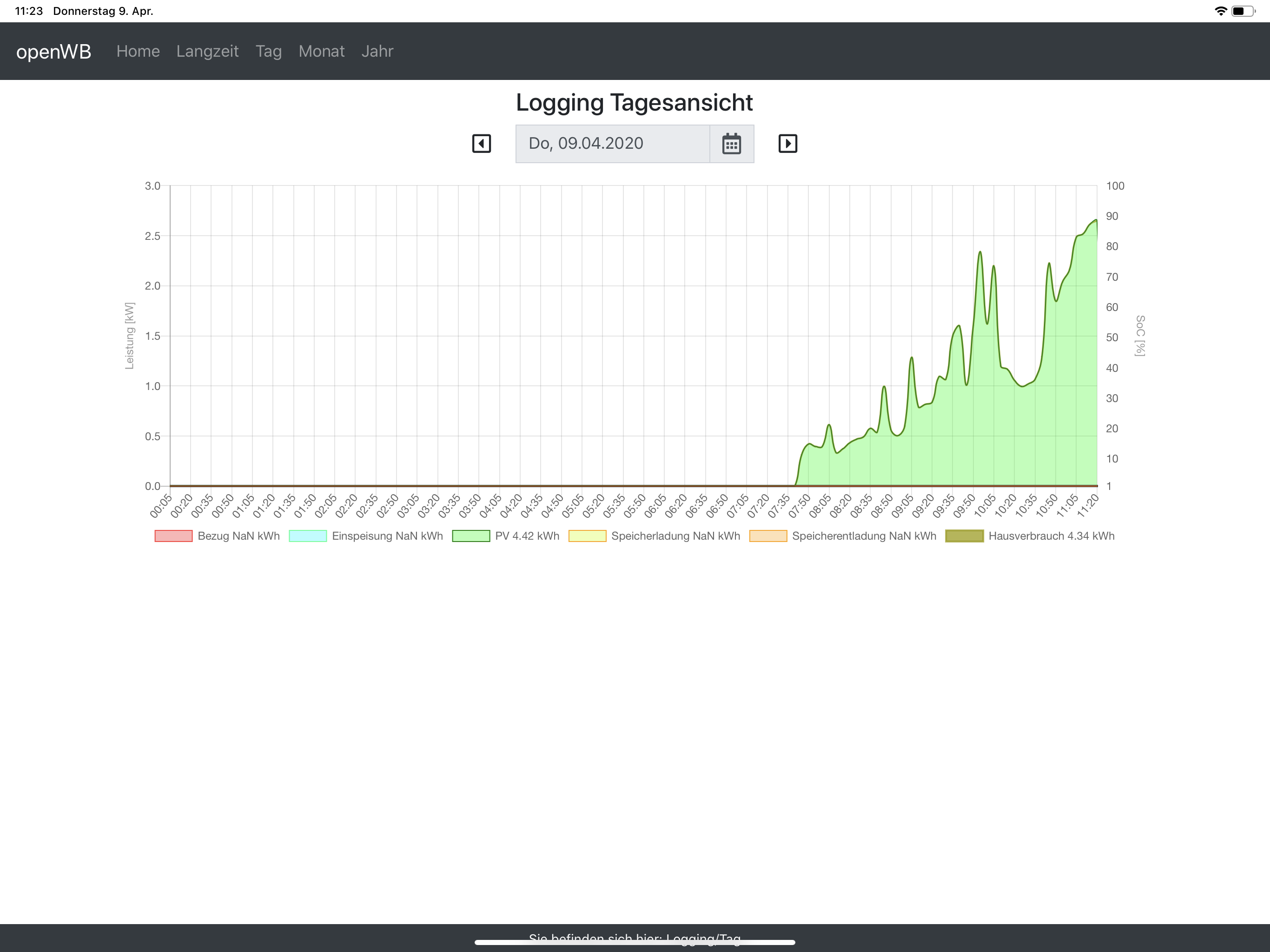 Sowohl auf der Übersichtsseite (Nachkommastellen werden angezeigt) als auch im Tagesgraph! Danke!!