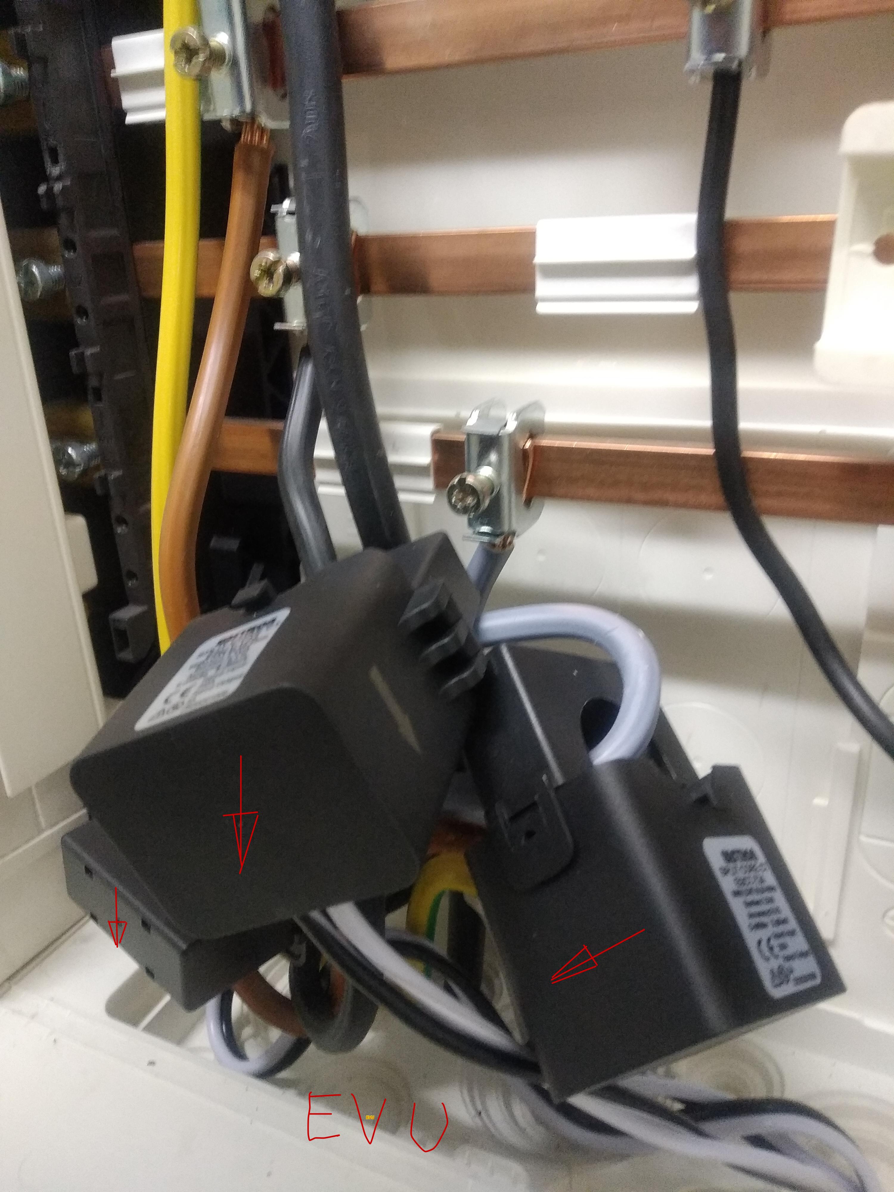 Alle Wandler sind in die gleiche Richtung ausgerichtet (Pfeil zum EVU). Ich hoffe man kann die roten Pfeile erkennen.