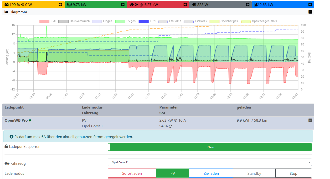 Edit: Hab nun Sofortlanden 1p eingestellt, ZOE dran, kurz Sofort laden aktivier, es wurde umgeschaltet auf 1p, PV Laden aktiviert, 2500W nicht erreicht angeblich, Corsa nun dran und es wird nun 1p PV geladen, komisch.