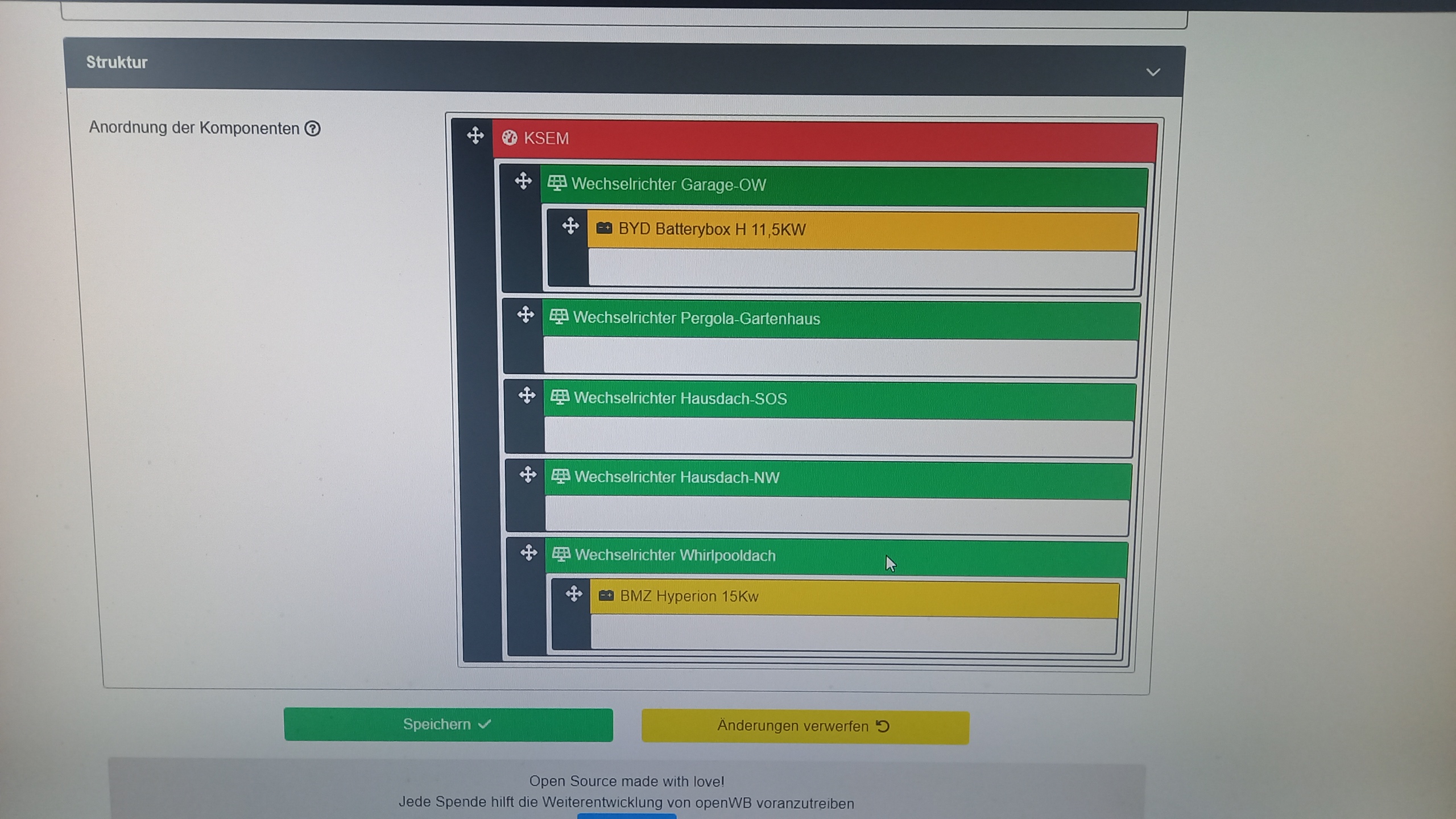15,2kWp SMA (SB4000TL-21, SB3.0, STP6.0-SE + BYD HVS, EnergyMeter), openWB Standard+, openWB Pro, Smart #1 (ersetzt den e2008), Tesla Model Y LR.