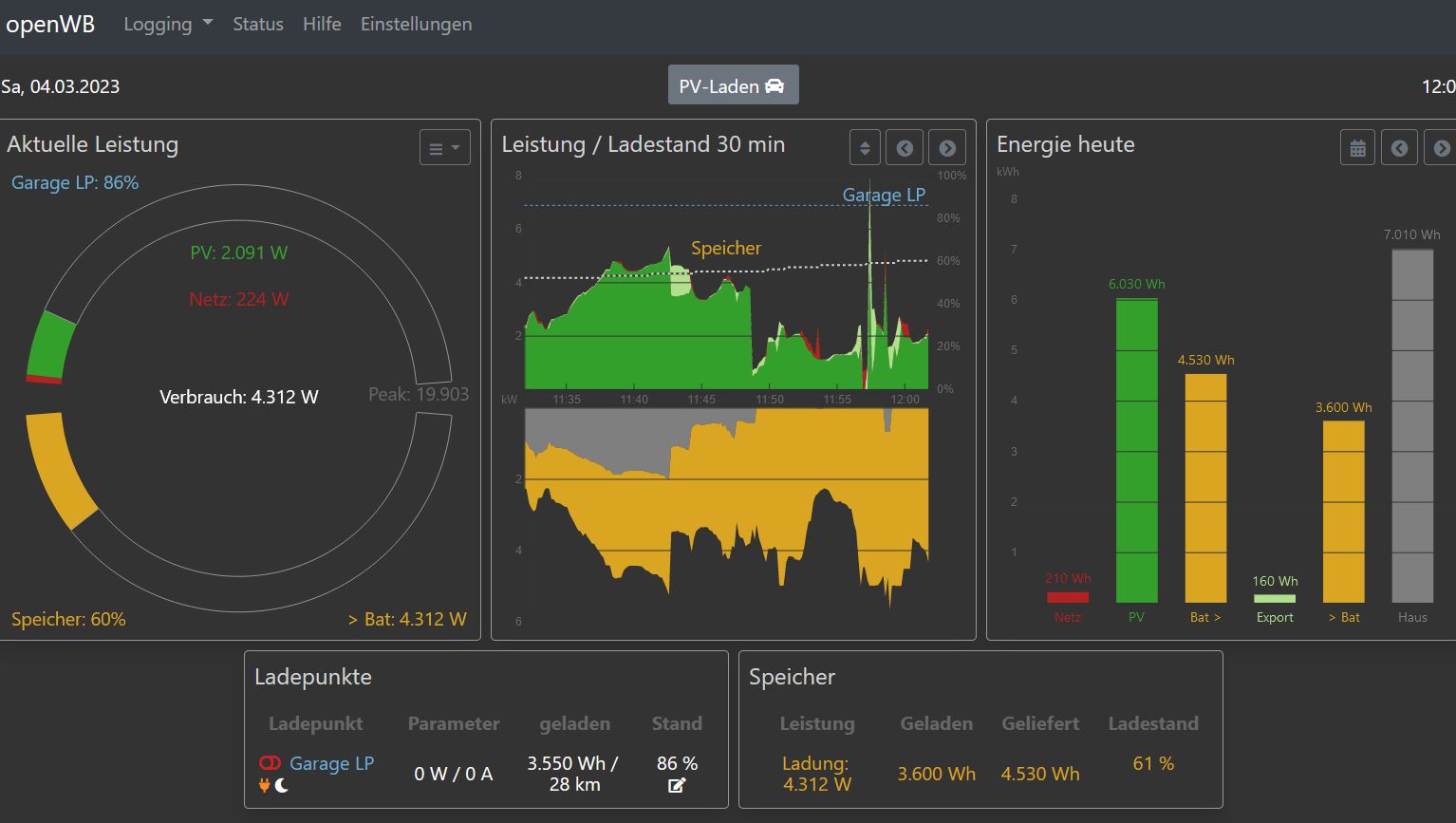 danke, versuche es jetzt mal in Standard Theme ... Bei mir ist das von VaterSam (und anderen) beschriebene Probleme genau identisch weiter vorhanden. Ich nutze die openWB eigentlich als Haupt-Steuer und auch Protokoll-System seit 2018. Wie bereits mehrfach geschrieben, sind seit einem halben Jahr die PV-Erträge konstant falsch protokolliert und angegeben, wenn die nur die Grundlast des Hauses anliegt. Sobald ein grösserer Verbraucher dazu kommt. stimmt es perfekt. Das ist schade, da so die Ertragsrechnung und Auswertung nicht stimmt.