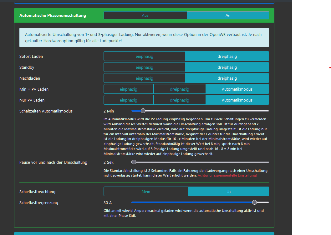 Den Punkt hätte man statt mit „Schieflast“ wohl besser mit „Strombegrenzung 1-phasiges Laden“ bezeichnet…