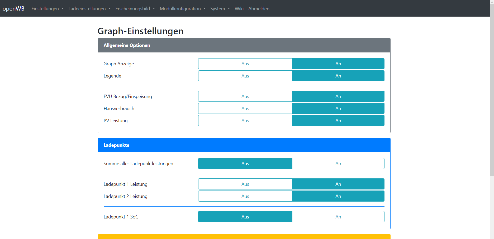 Unter der Graph-Einstellung musste der Ladepunkt aktiviert werden.