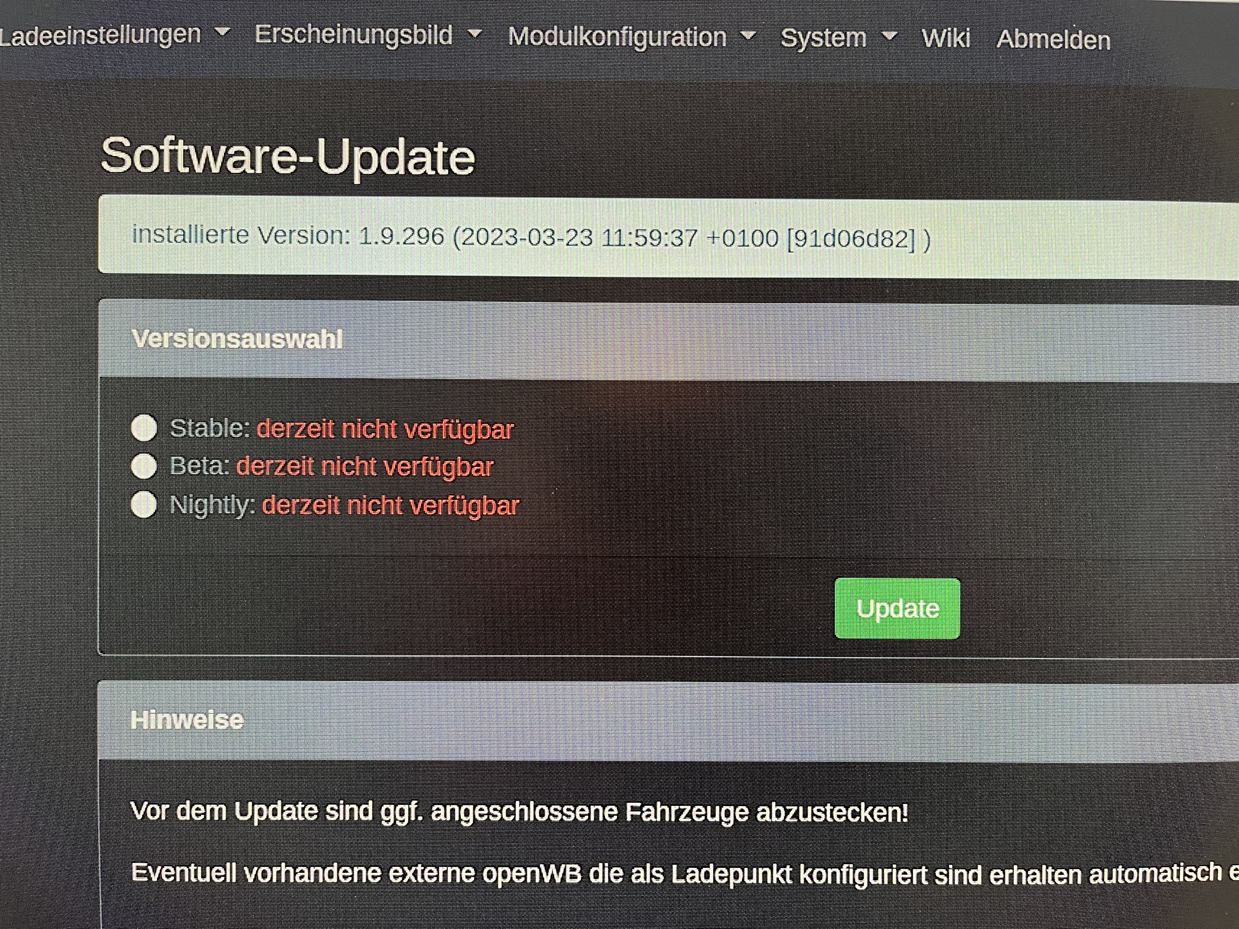 - Webinterface von oWB kann ich via localhost/openWB/web öffnen