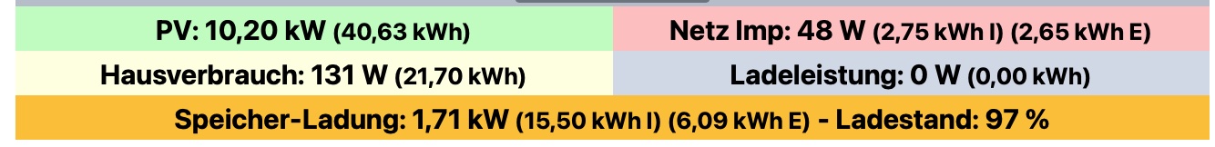 Verdoppeln klingt ja noch irgendwie nach einem nachvollziebaren Fehler. Schlimmer finde ich jedoch das mit dem Hausverbrauch, der ja nicht ganz verdoppelt ist. Aber vielleicht spielt da ja auch das Speicher-Problem mit rein.