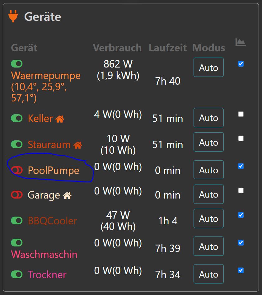 sonst nehme doch mal die Poolpumpe auf position 2 der Smarthomegeräte.