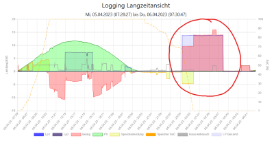 Das würde die Thematik nochmal erweitern: Ein ungewünschter Ladevorgang, der nicht dokumentiert wird. Und du kannst sicher ausschließen, dass andere Verbraucher die Energie genutzt haben? Wärmepumpe, Ofen, Herd, ... ?