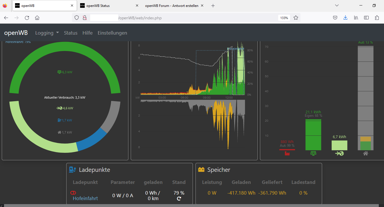 Dann stelle ich immer wieder fest, dass meine Powerwall-Daten immer wenn ich irgendetwas an der OpenWB verändere und oder einen Neustart mache (so ganz ganz genau habe ich das noch nicht festmachen können), die Abfrage der Powerwall nicht mehr funktioniert.