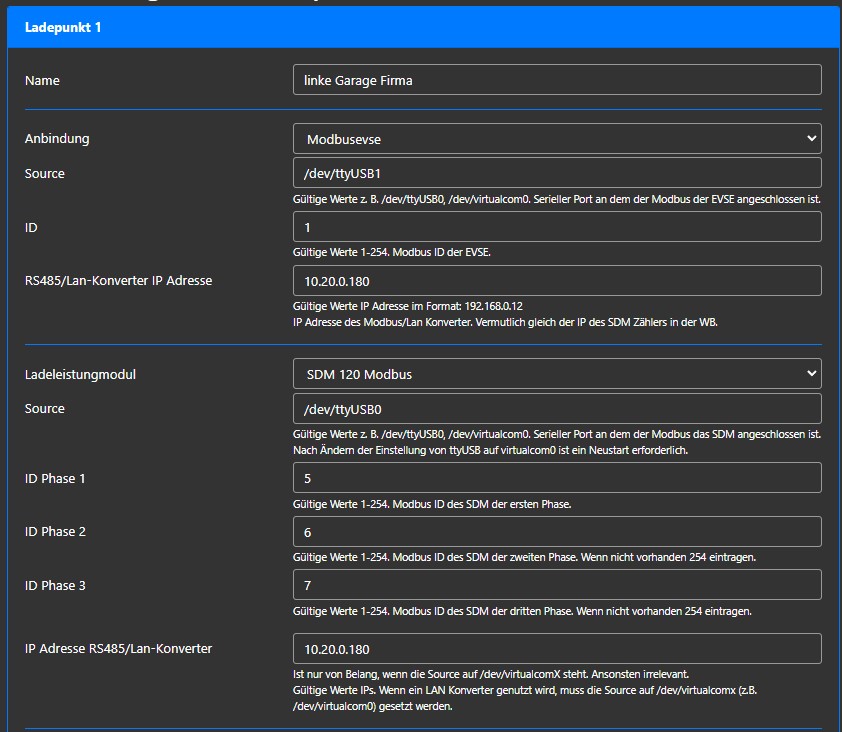 bei mir funktioniert die "alte" OpenWB von Januar 19 Eine Duo mit abgesetztem zweiten LP und Modbus LAN Konverter noch nicht