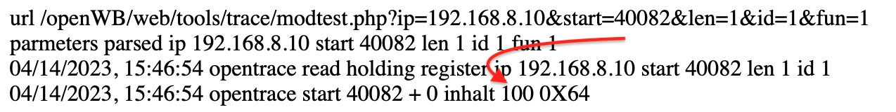 http://wallbox.fritz.box/openWB/web/tools/trace/modtest.php?ip=192.168.8.10&start=40082&len=1&id=1&fun=1Code: Alles auswählen