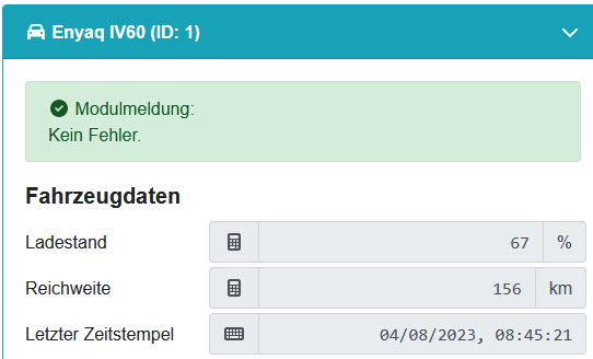 Konnte unter Einstellungen->Konfiguration->Fahrzeuge-> Fahrzeuge-> Fahrzeug das Skodaconnect SOC-Modul konfigurieren.