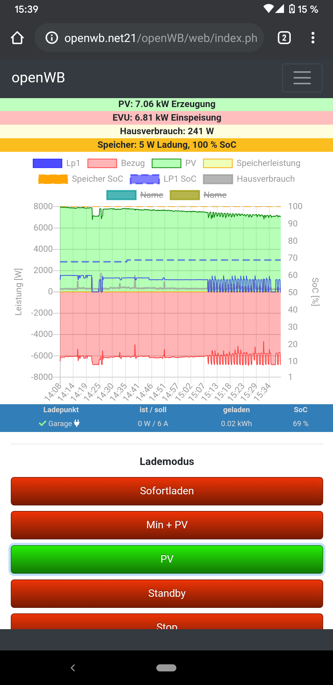 Die PV mit Fronius Symo WR liefert 9,7 kWp. Sollte ich an den Einstellungen noch etwas ändern? Im normalen PV-Lademodus wird super geregelt. Wenn ich das richtig verstanden habe, wird bei dem 70%-Modus nur der Sollpunkt verschoben, der Algorithmus ist identisch.