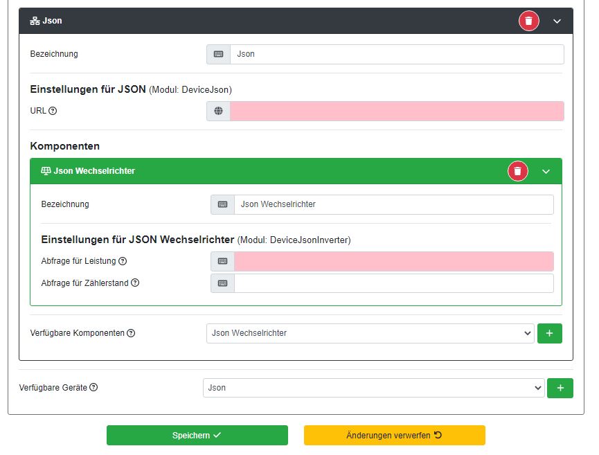 Sollte in 2.0 im Prinzip genauso gehen.Frank-H hat geschrieben: Di Mai 02, 2023 7:33 am Ich habe jetzt mal die Beta 2.0 installiert, die auch soweit läuft. Allerdings bekomme ich das dort nicht eingerichtet. Ich nehme an, dort muß als "Verfügbares Gerät" JSON gewählt werden, aber die notwendigen Einträge bekomme ich leider nicht hin.